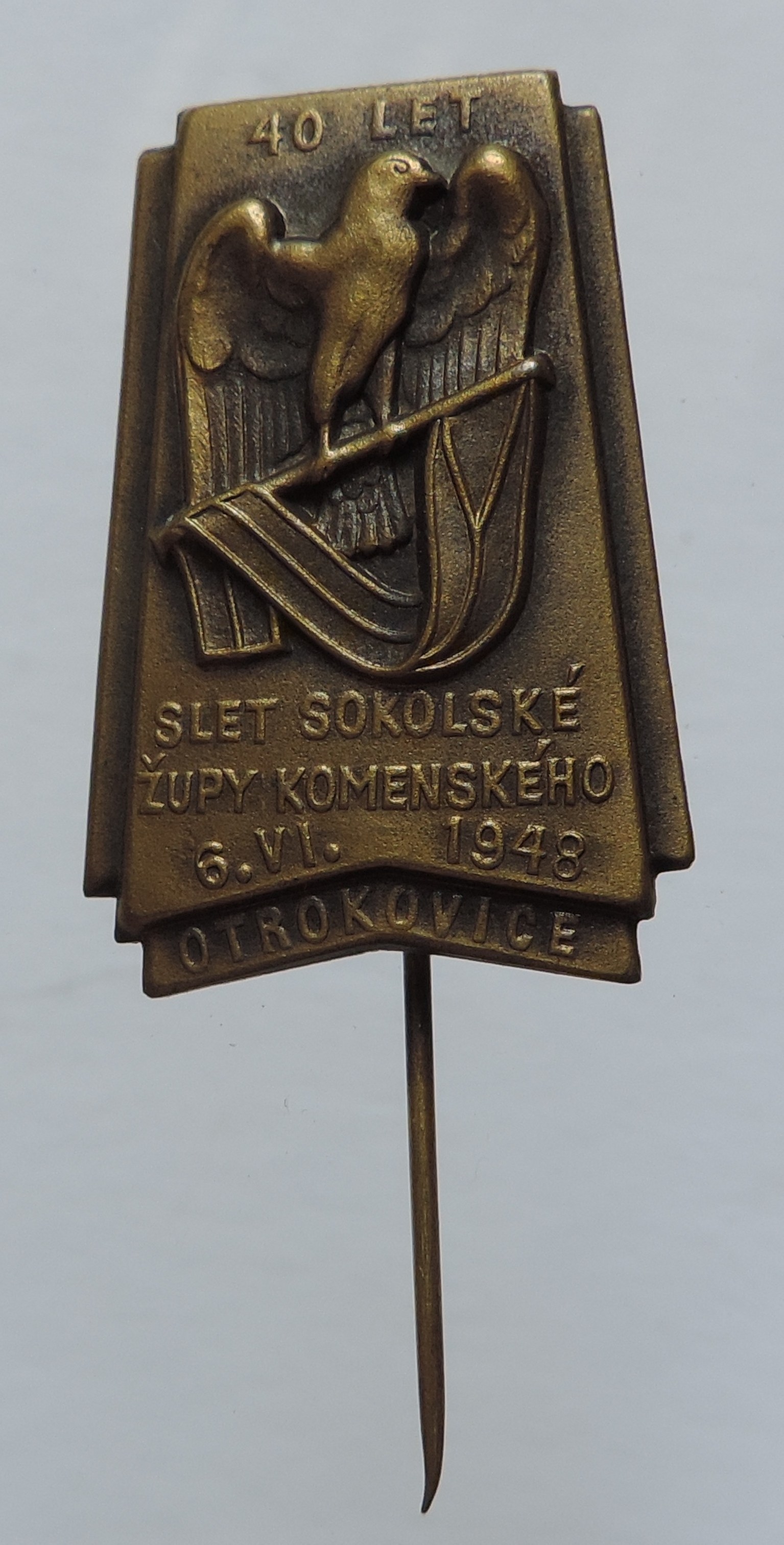VŠESOKOLSKÉ SLETY - ODZNAKY, sokolský odznak Sokol Otrokovice 40 let 1948
