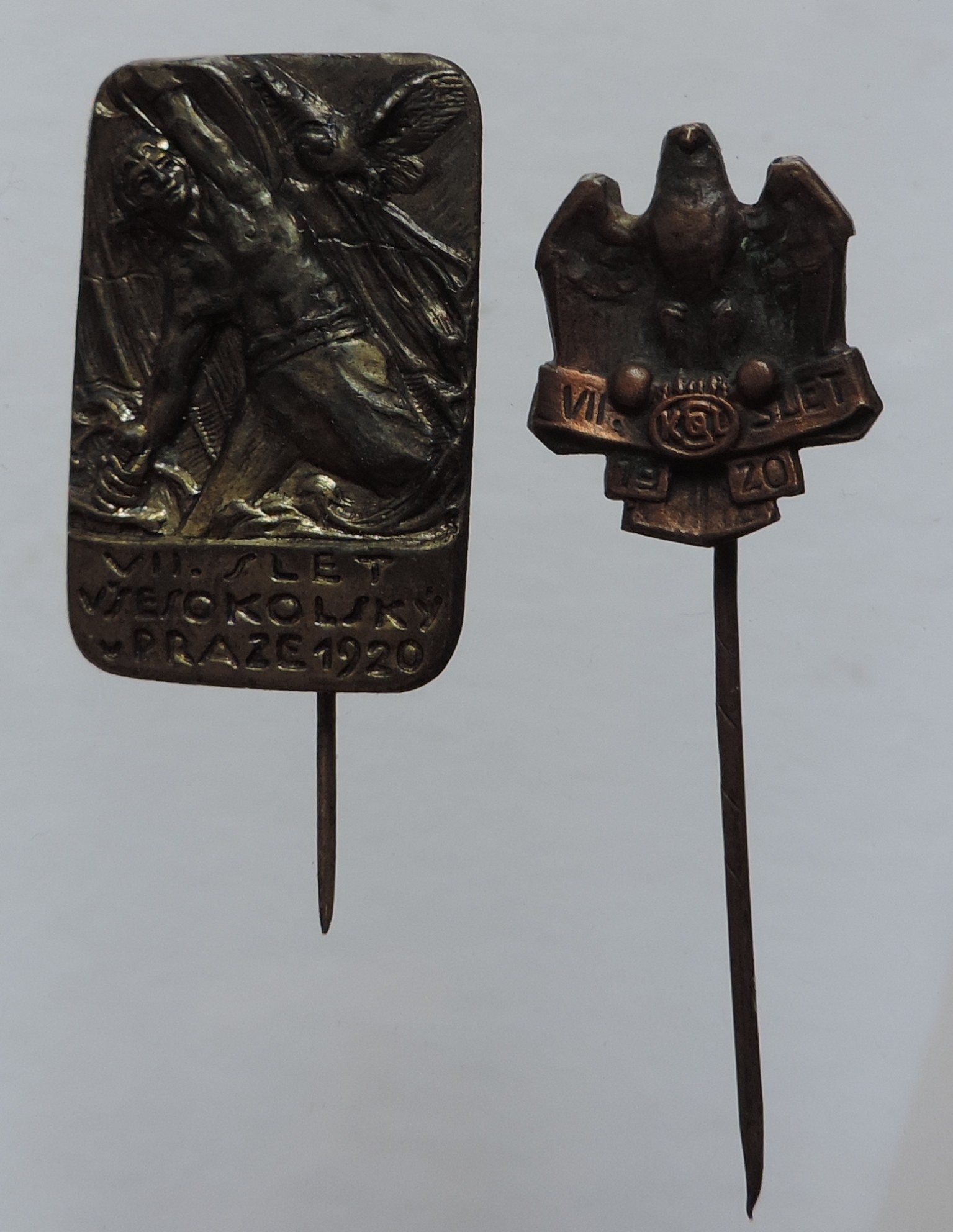 VŠESOKOLSKÉ SLETY - ODZNAKY, VII. všesokolský slet v Praze 1920 2ks