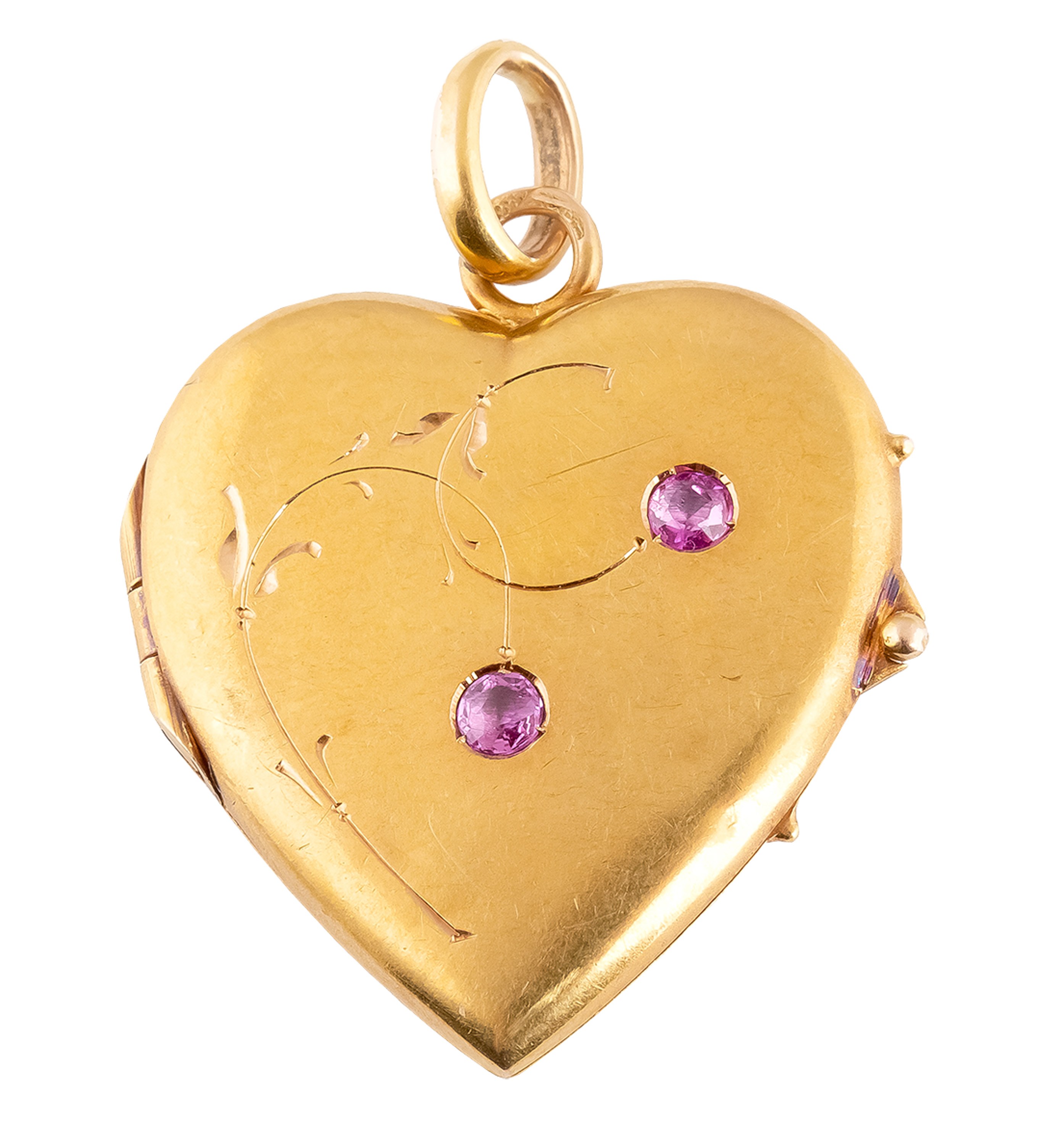 złoto pr. 0,750, m. 3,60 g, 2 szt. rubinów; dł. z zawieszeniem 3 cm