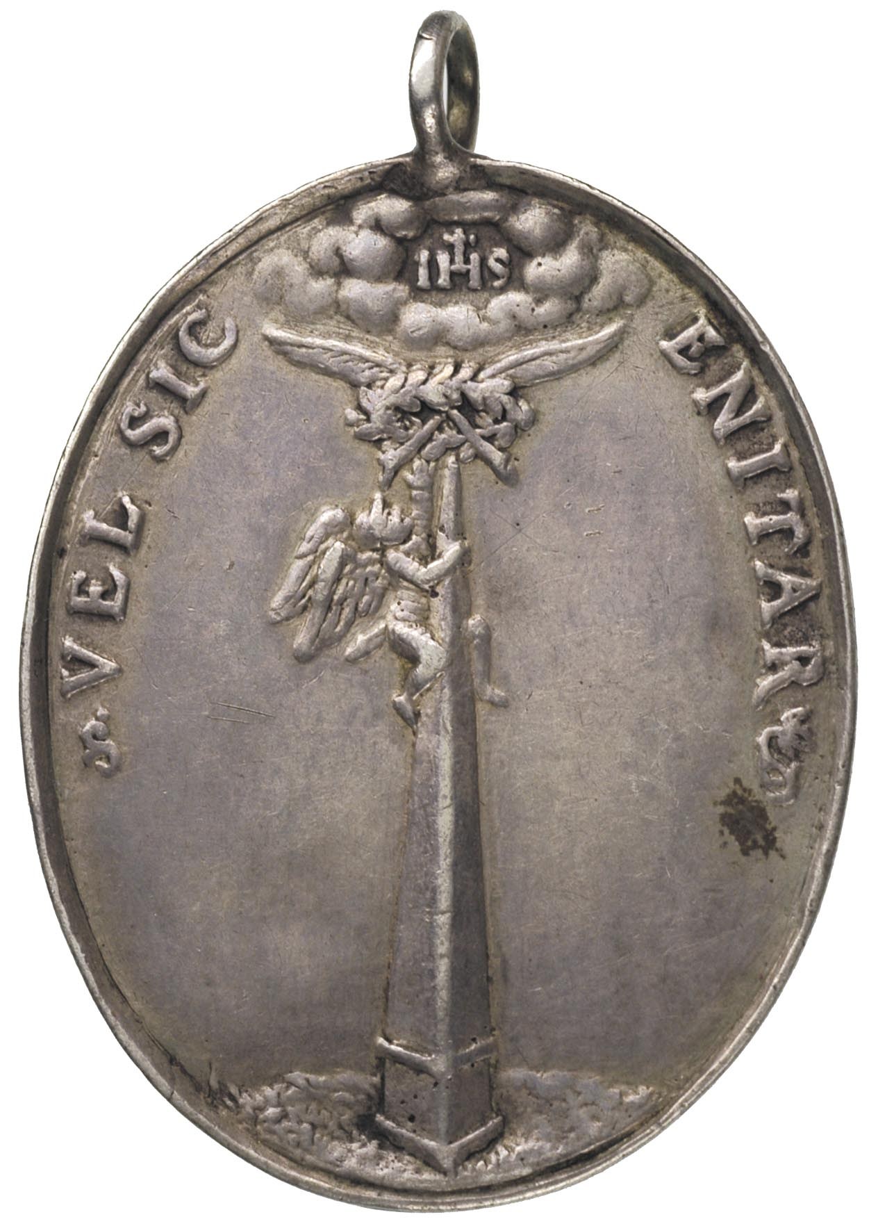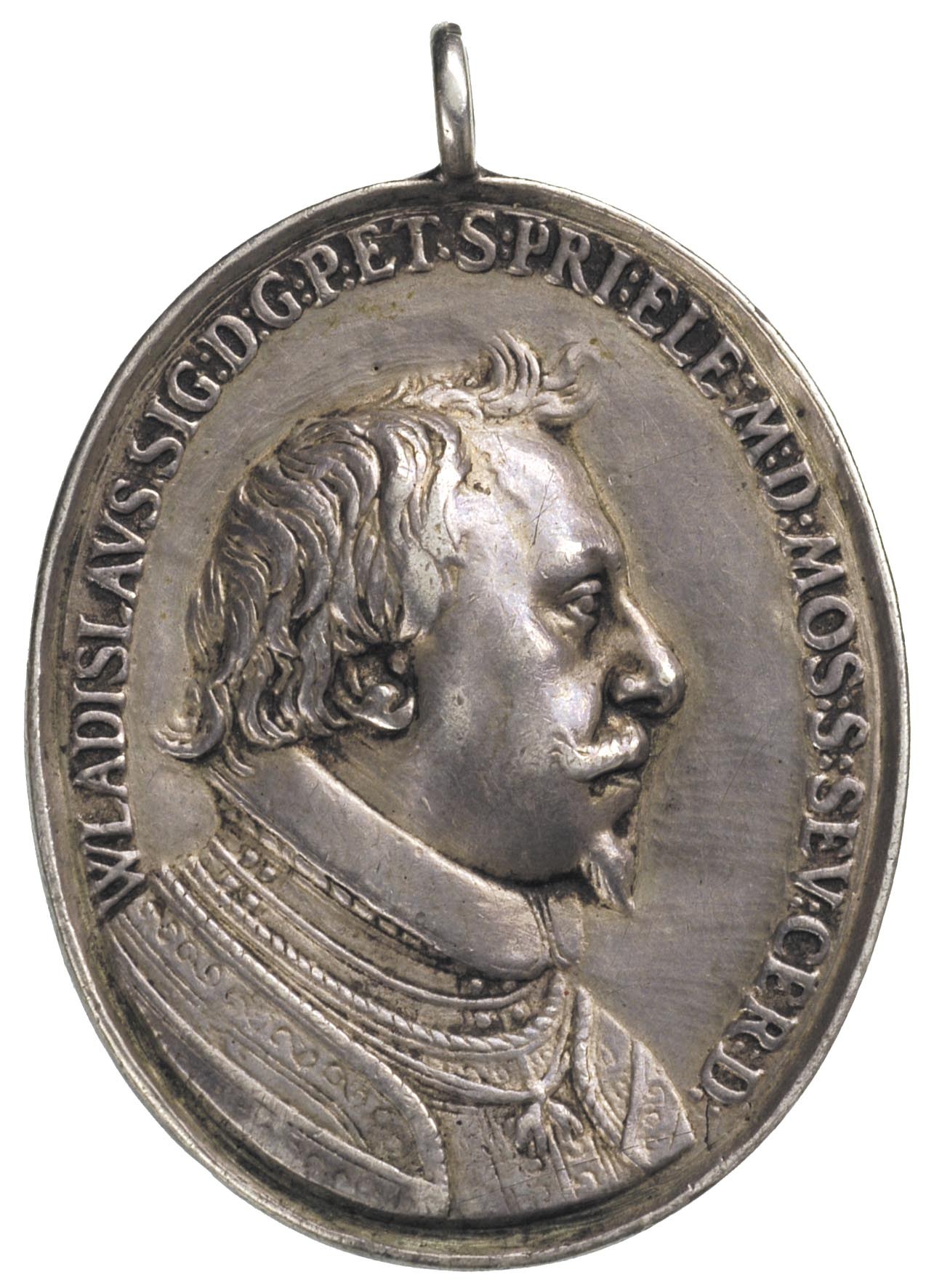 POLSKA, Władysław - car 1610-1619, medal owalny z uchem, Aw: Popiersie królewicza Władysława w prawo, w otoku napis WLADISLAVS.SIG:D:G:P:ET.S:PRI:ELE:M:D:MOS:S:SEV:CER:D: /Władysław Zygmuntowicz z bożej łaski Polski i Szwedzki Królewicz, obrany Wielki Książę Moskiewski, Smoleński, Siewierski, Czernichowski Książę/, Rw: Obelisk, na nim wspiający się uskrzydlony młodzieniec, sięgający po laur i dwie palmy, w otoku napis VEL SIC ENITAR /albo i tak dopnę/, srebro lane i cyzelowane 18.91 g, 38.5 x 51 mm, Racz. 72, H-Cz. 1731 R4, bardzo rzadki medal upamiętniający nieudaną próbę obsadzenia królewicza Władysława na tronie rosyjskim