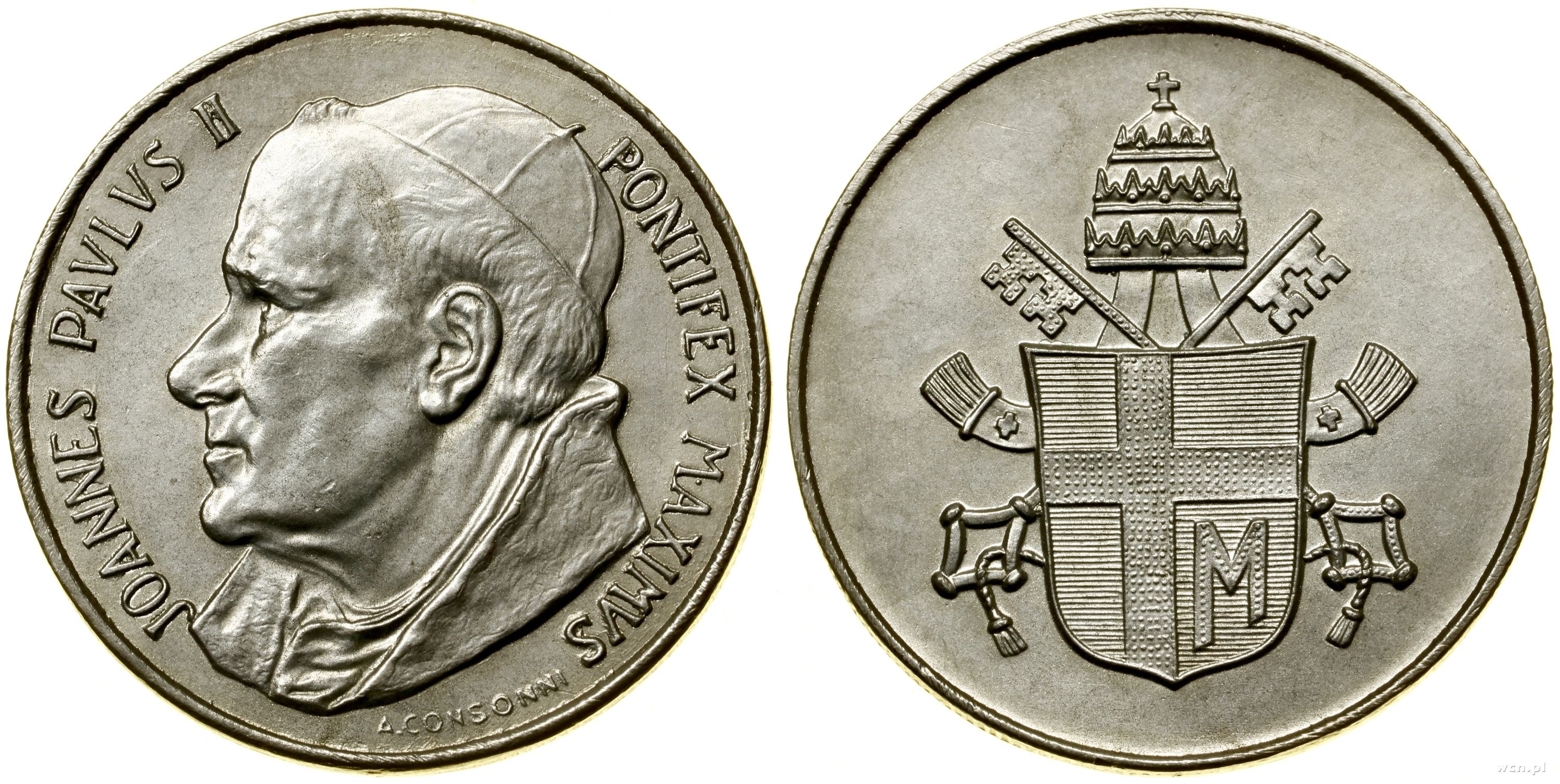 sygnowany A. Consonni, Aw: Głowa papieża w prawo i napis JOANNES PAULUS II PONTIFEX MAXIMUS, Rw: Klucze papieskie