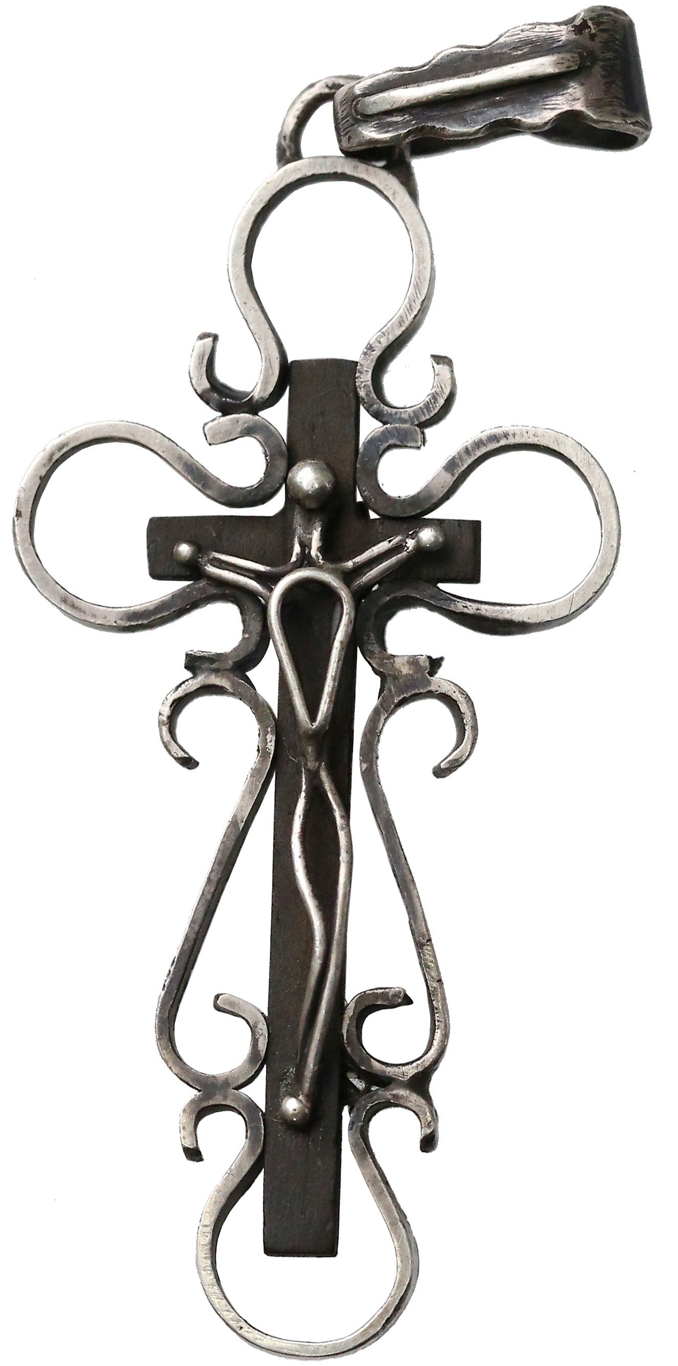 Bardzo ładny krzyżyk drewniany w srebrnej oprawie wykonany prawdopodobnie w oflagu Woldenberg II C (Dobiegniew).