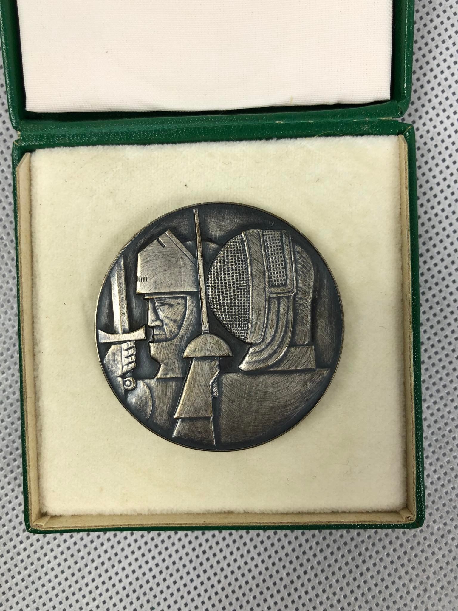 Zestaw różnorodnych medali sportowych z okresu PRL. W pudełkach. Stany widoczne na zdjęciach.