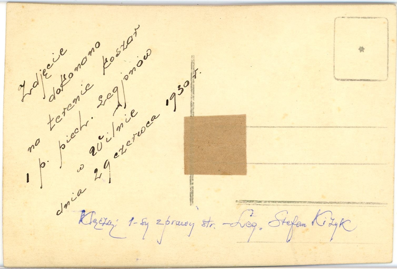 Wym.: 140 x 90 mm. Na fotografii m.in.: st. leg. Stefan Kizyk. Na odwrocie w środkowej części ślad podklejenia, poza tym stan dobry.