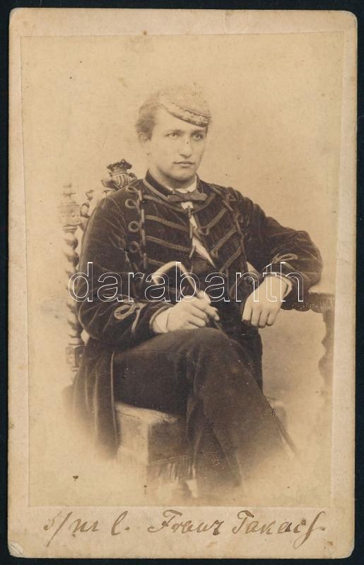 1866 Halle, előkelő öltözetű fiatal férfi portréja (Franz Takach v. Takacs?), vizitkártya E. May fényképész műterméből, feliratozva, 10x6,5 cm