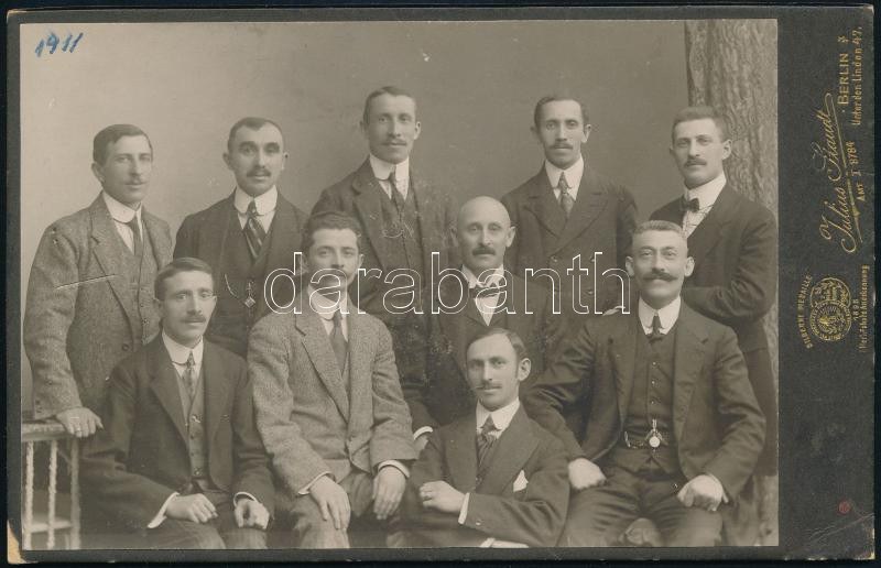 1911 A berlini tanulmányúton részt vett magyar kirakatrendezők csoportképe, keményhátú fotó, 10,5×16...