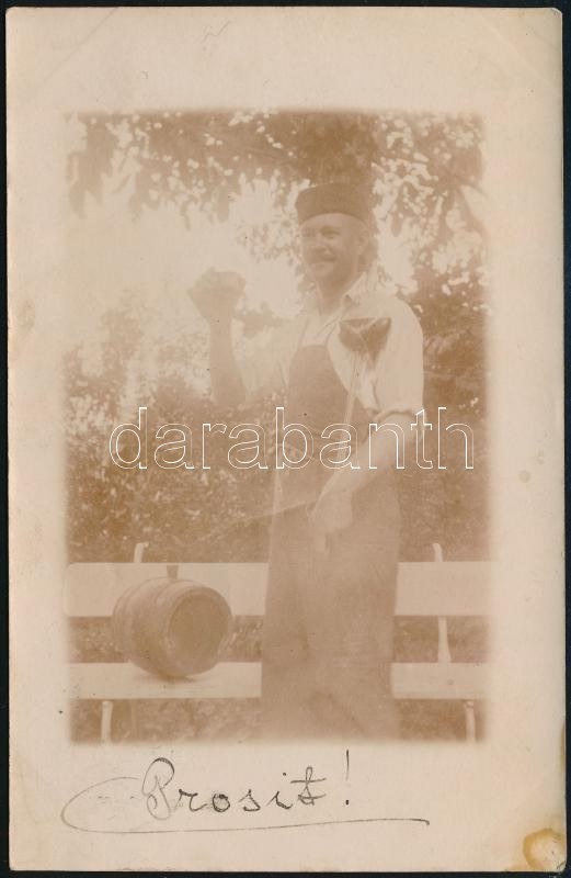 1916 "Prosit!" megírt fotólap, foltos, 14×9 cm