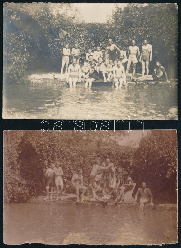 1924 Mátraháza, fürdőzők csoportképe, 2 db hátoldalán feliratozott vintage fotó, 6x9 cm
