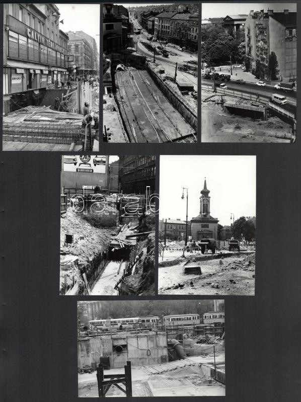 1974 Budapest, Kálvin tér, az aluljárórendszer építése idején, 13 db vintage ezüstzselatinos fotó, egy része datált...