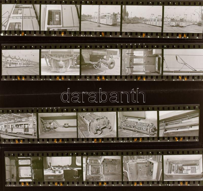 1982 Villamoskocsik és berendezéseik, 35 db vintage NEGATÍV, eredeti felirat a negatívtartóban belül...