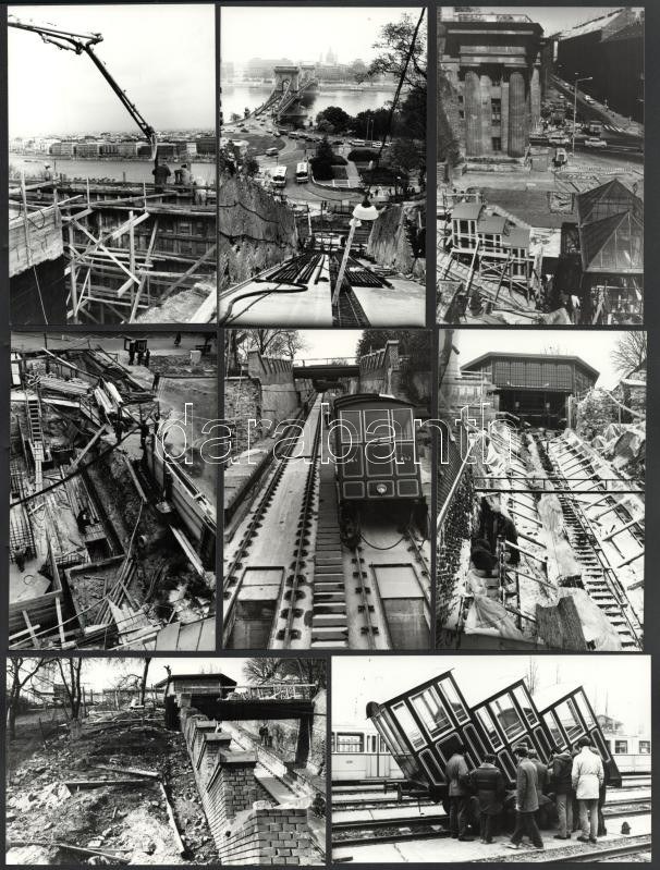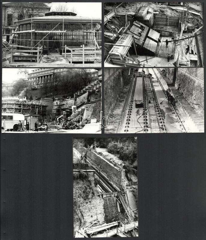 1985 Budapest, a budavári sikló építése idején, 13 db vintage ezüstzselatinos fotó, datált, többsége jelzett...
