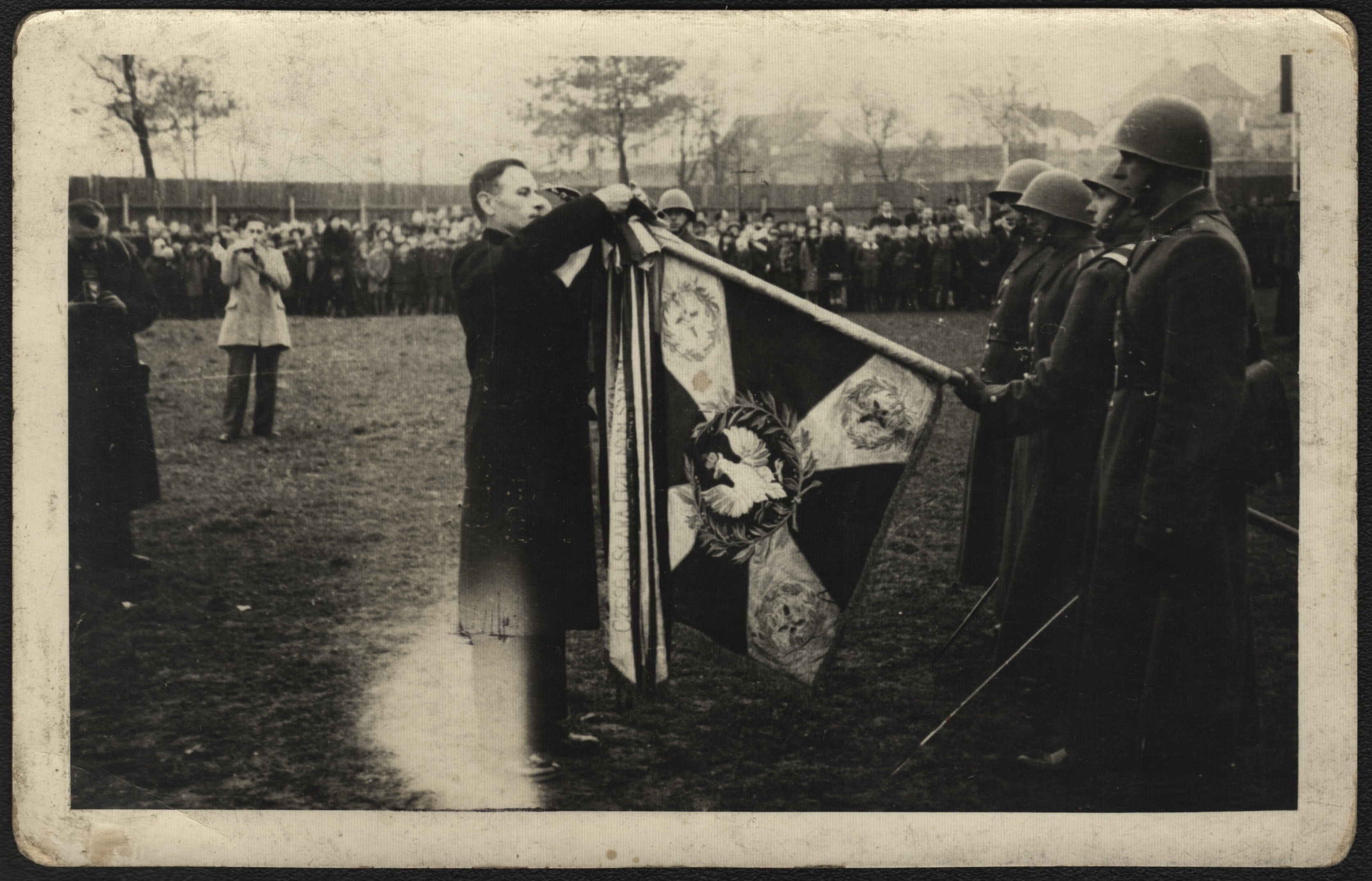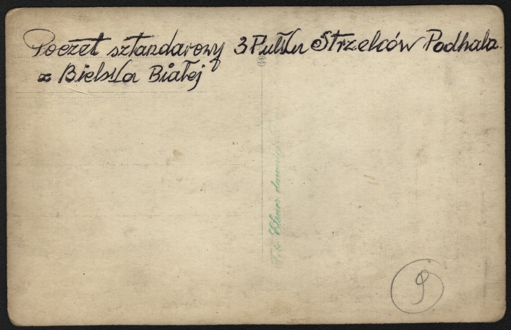 3 Pułk Strzelców Podhalańskich] Fotografia pocztu sztandarowego 3 P. S. P. w Bielsku Białej.