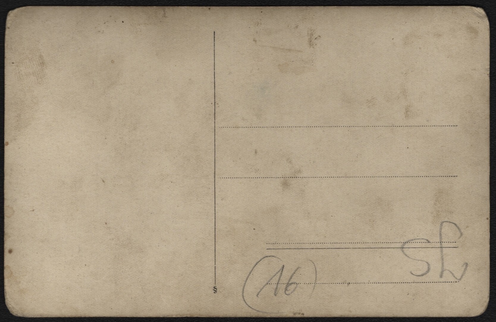 Fotogr. o wym. 8,7 x 14 cm. Zabrudzenia, drobne zapiski na rewersie.