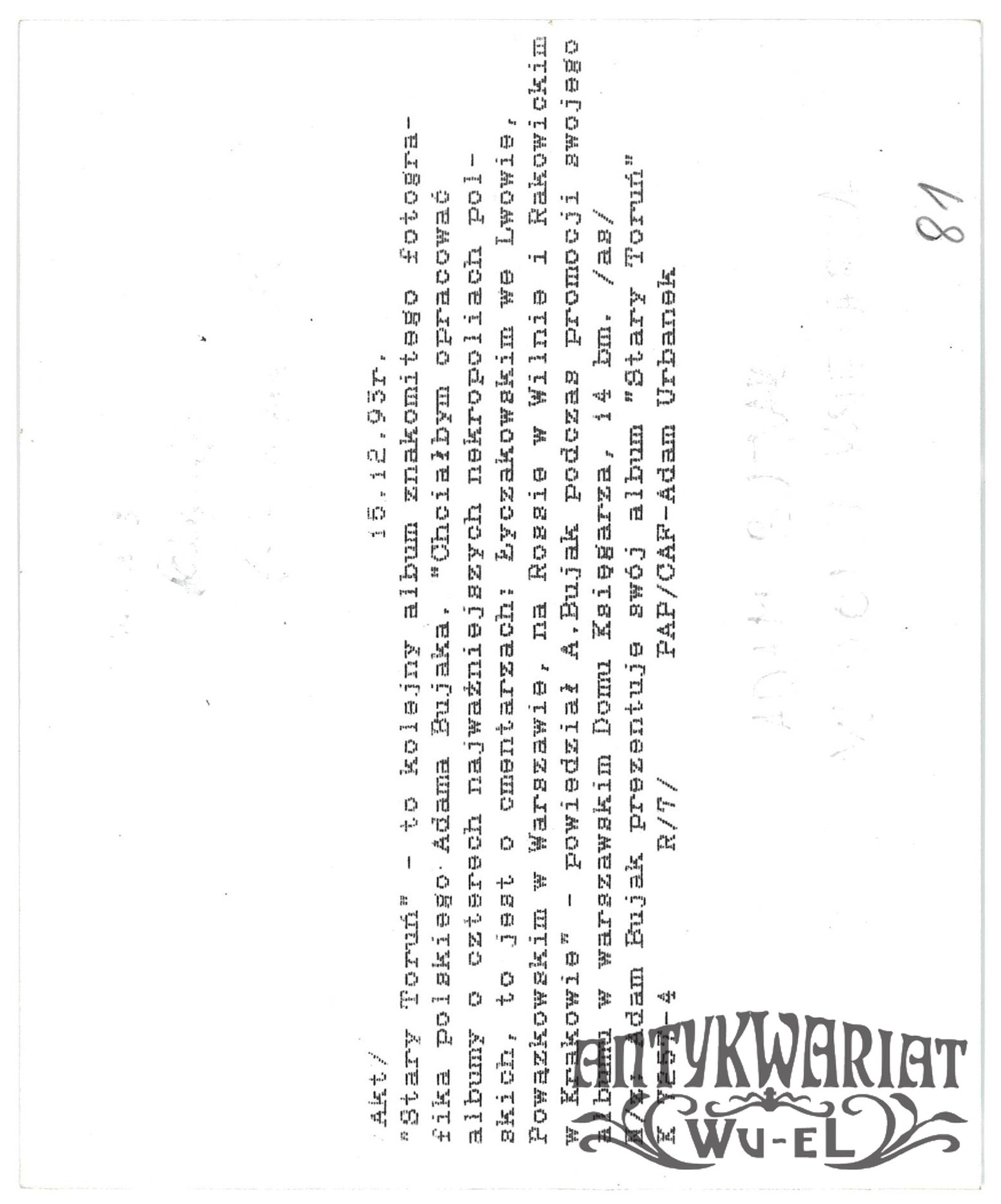 ADAM BUJAK prezentuje swój album "Stary Toruń" w Domu Księgarza; fot. CAF - Adam Urbanek, 15.12.1993 r.; stan bardzo dobry, wymiary: 12,6 x 15,3 cm