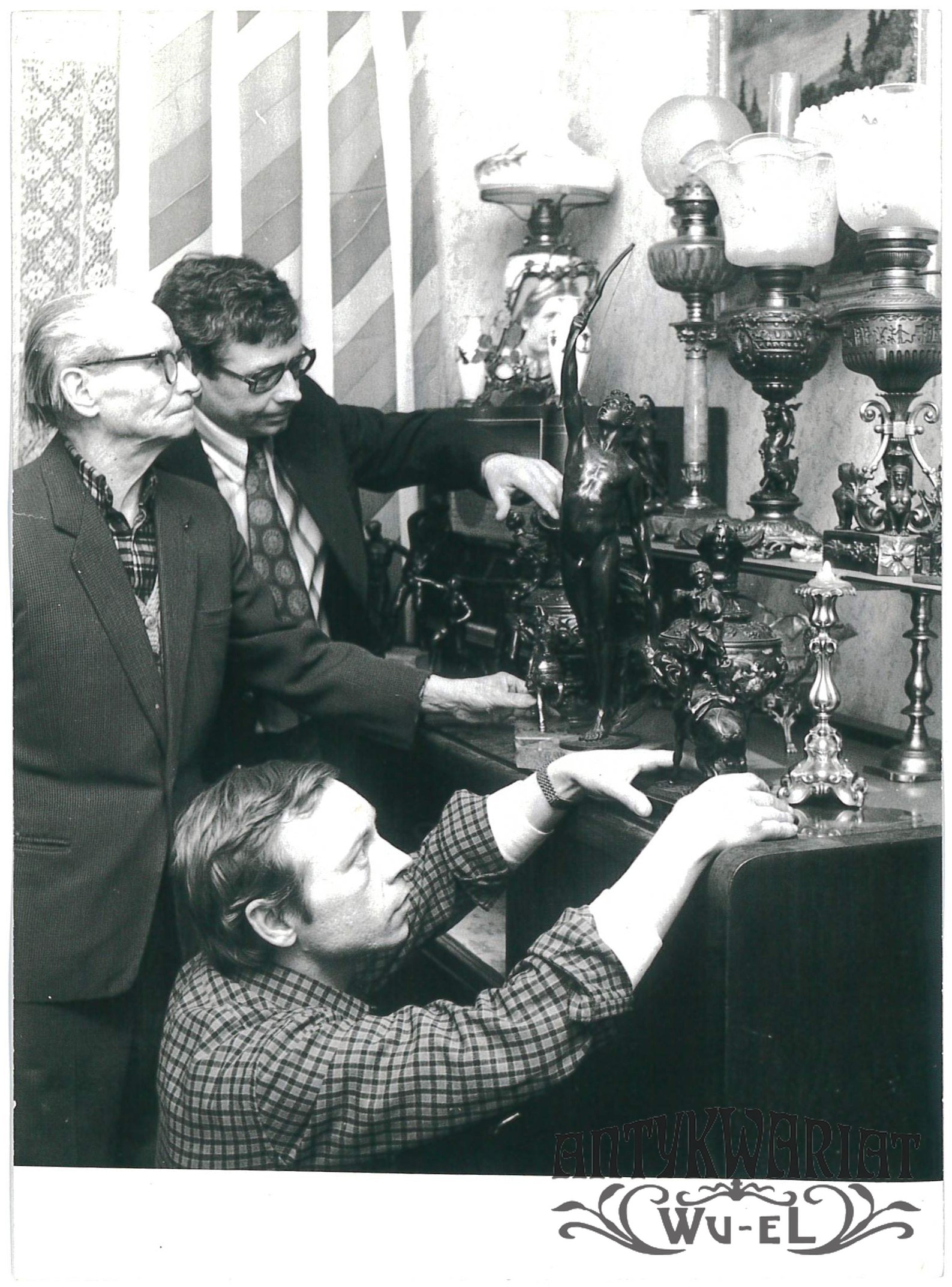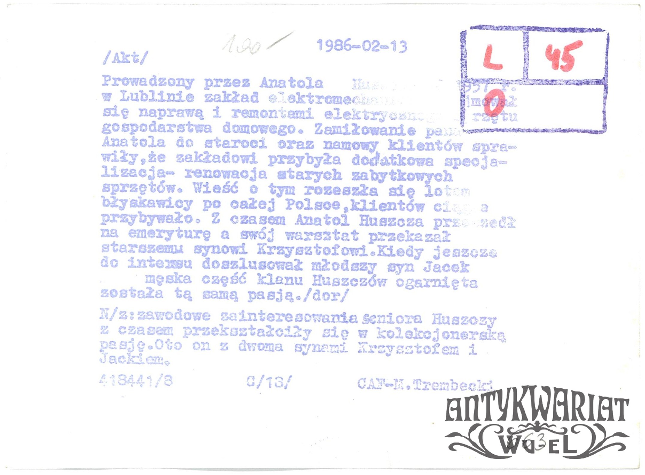 ANATOL HUSZCZA z synami i jego kolekcja; fot. CAF - H. Trembecki, 13.02.1986 r.; stan bardzo dobry minus, wymiary: 13,1 x 17,9 cm.