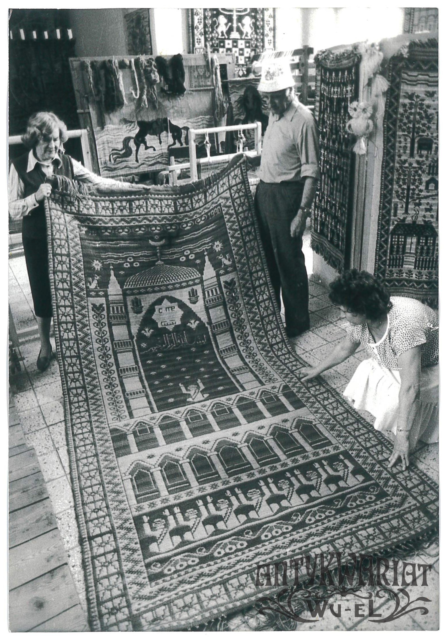 BARCZEWO (pow. Olsztyn). Artystka - tkaczka Barbara Hulanicka w swojej pracowni, podczas przygotowań do wystawy pt. "Religie świata"; fot. CAF - Stanisław Moroz, 30.07.1990 r.; stan bardzo dobry, wymiary: 12,7 x 18,3 cm.