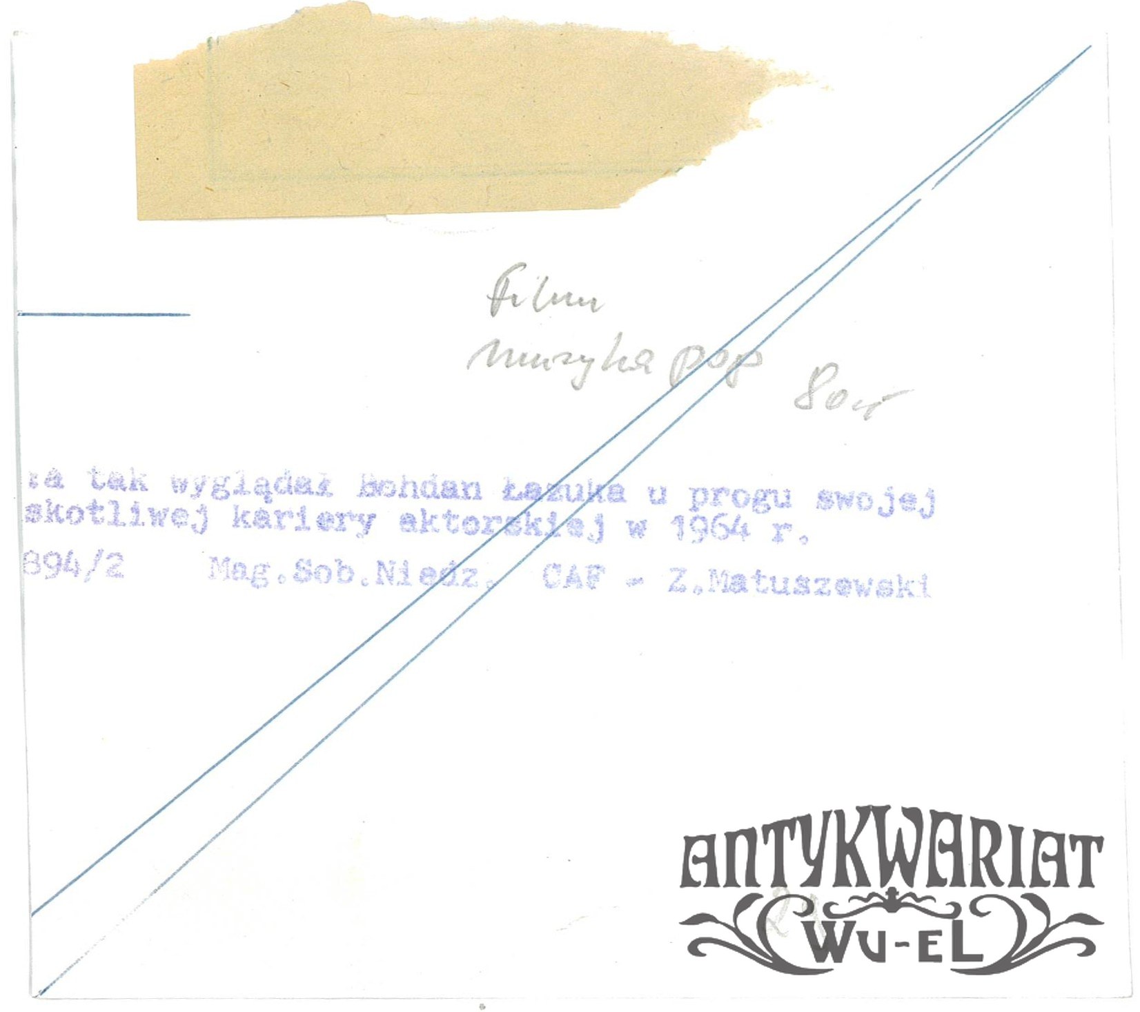 BOGDAN ŁAZUKA. Fot. Z. Matuszewski, 1964 r.; stan bardzo dobry minus (rozdarcie), 1964 r., wymiary: 13,4 x 12,8 cm