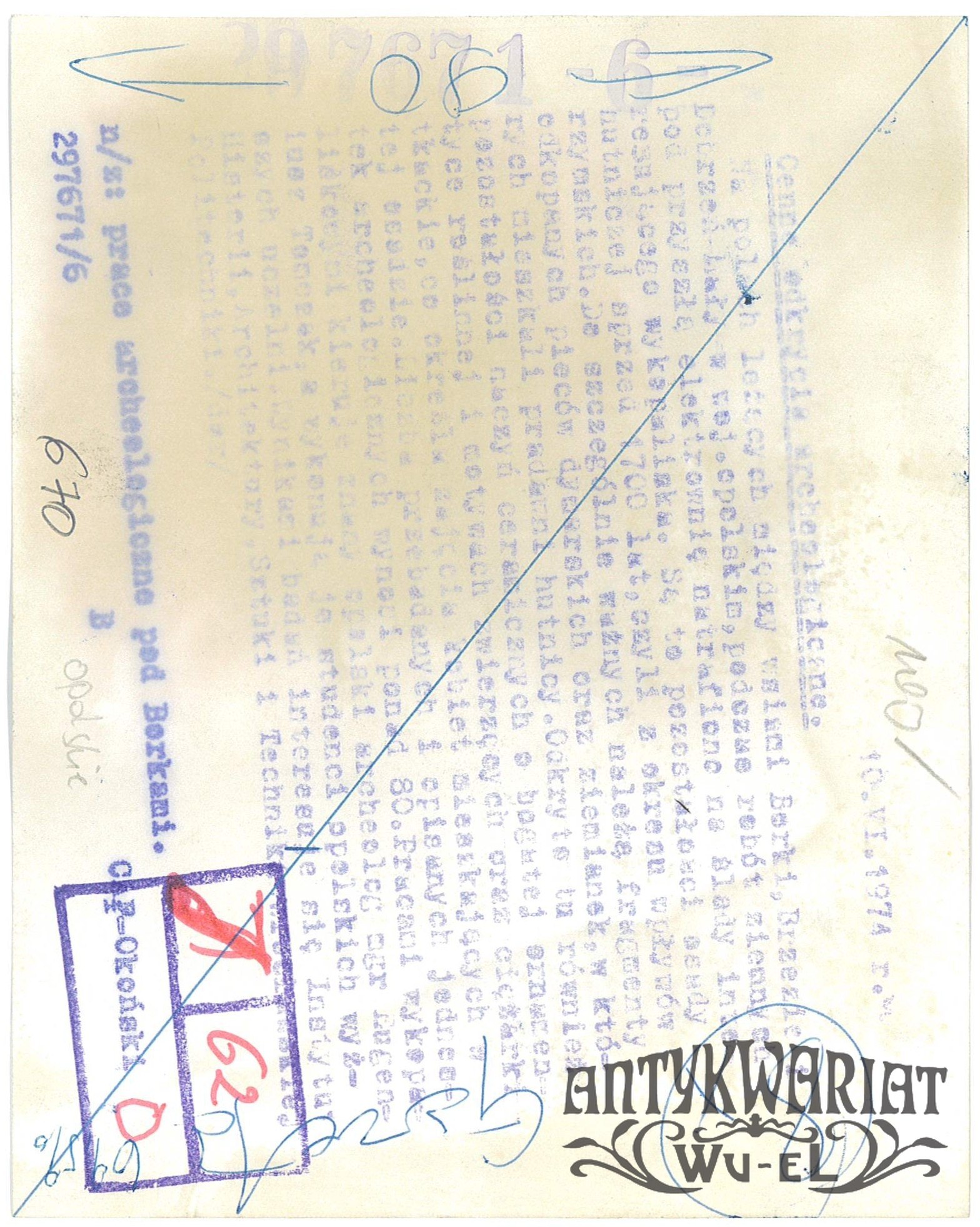 BORKI (woj. opolskie). Prace archeologiczne; fot. CAF - Okoński, 10.06.1974 r.; stan bardzo dobry minus, wymiary: 13 x 16,3 cm.