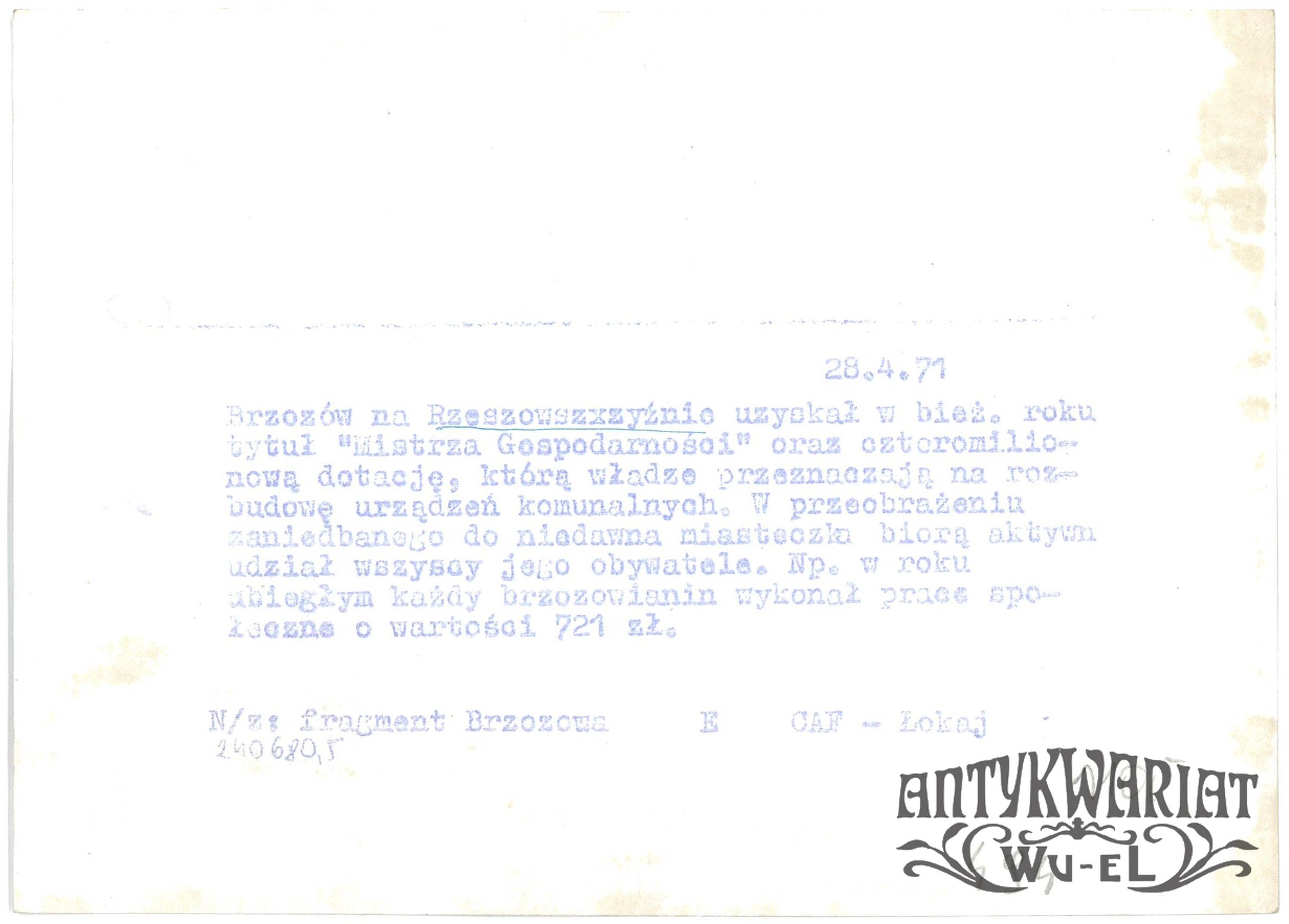 BRZOZÓW. Fragment miasta; fot. CAF - Łokaj, 28.041971 r.; stan bardzo dobry, wymiary: 18,2 x 13 cm.