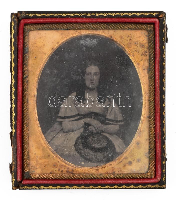 cca 1845-1850 Női portré, dagerrotípia, első borító nélkül 8x9,57 cm