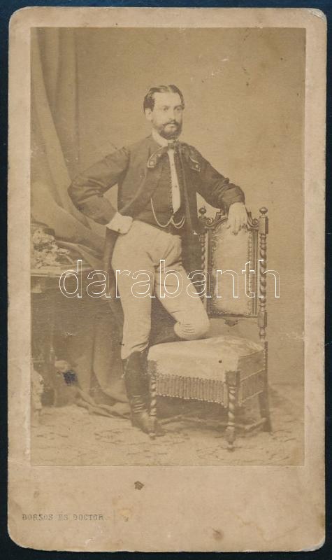 cca 1860-1870 Elegáns úr egészalakos portréja, vizitkártya Borsos és Doctor pesti műterméből, kissé foltos, 10...