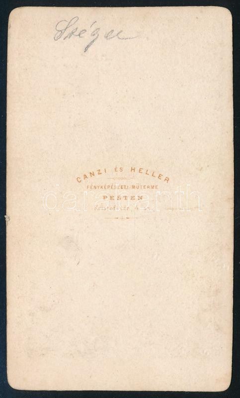 cca 1870 Stéger Xavér Ferenc (1824-1911) operaénekes (tenor) egészalakos portréja, vizitkártya Canzi és Heller pesti műterméből, kis foltokkal, 10,5x6 cm