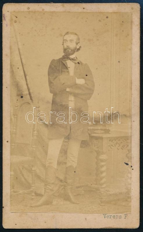 cca 1870 Székely úr portréja, vizitkártya Veress Ferenc (1832-1916) kolozsvári műterméből, kissé ázott, foltos, 10...