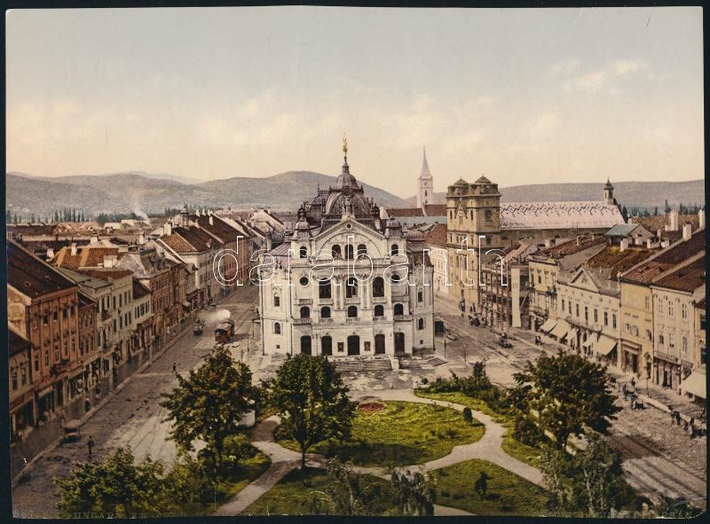 cca 1880 Kassa (Felvidék) Nemzeti Színház, fotokróm nyomat, sérülésekkel, 15×22 cm