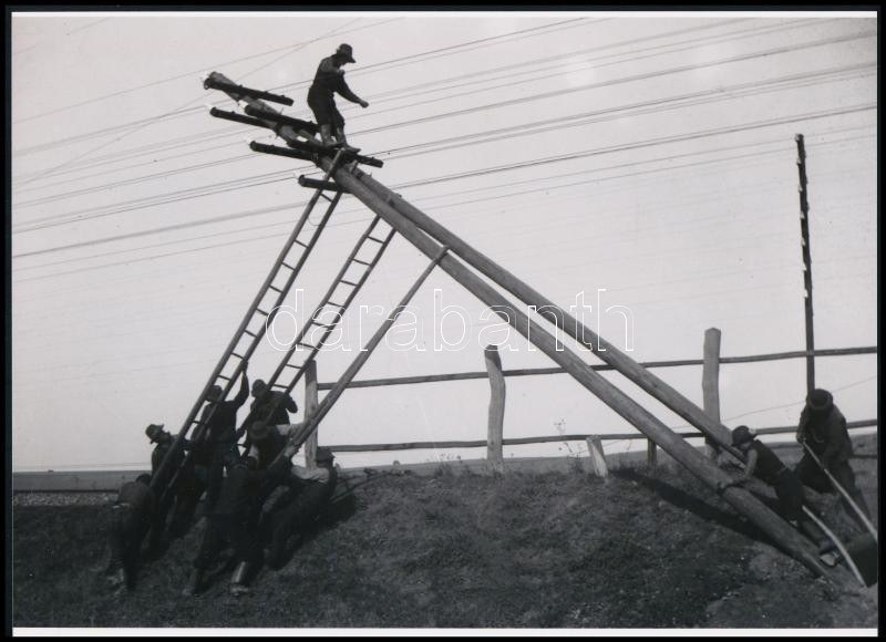 cca 1931 Egyensúlyozó munkás póznaállítás idején, Kerny István (1879-1963...