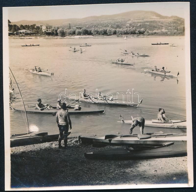 cca 1936 Bergsmann Pál budapesti fotóművész és vadevezős hagyatékából 1 db jelzés nélküli vintage fotó (Vízi csúcsforgalom a Dunán), ezüst zselatinos fotópapíron, Bergsmann is tagja volt a - rövid ideig létező - Modern Magyar Fényképezők Társaságának, felületi sérüléssel, 58x58 mm