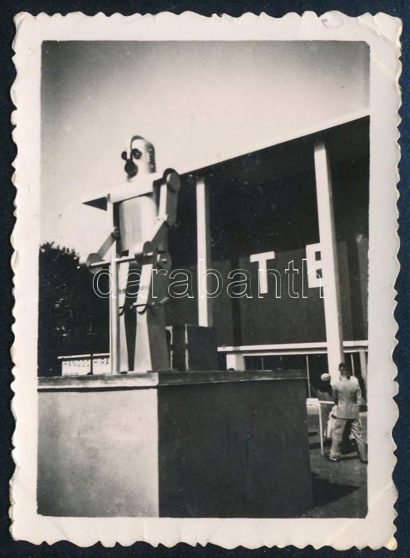 cca 1940 Budapesti Nemzetközi Vásár, robot, fotó, sarkán törésnyom, 6,5×4,5 cm