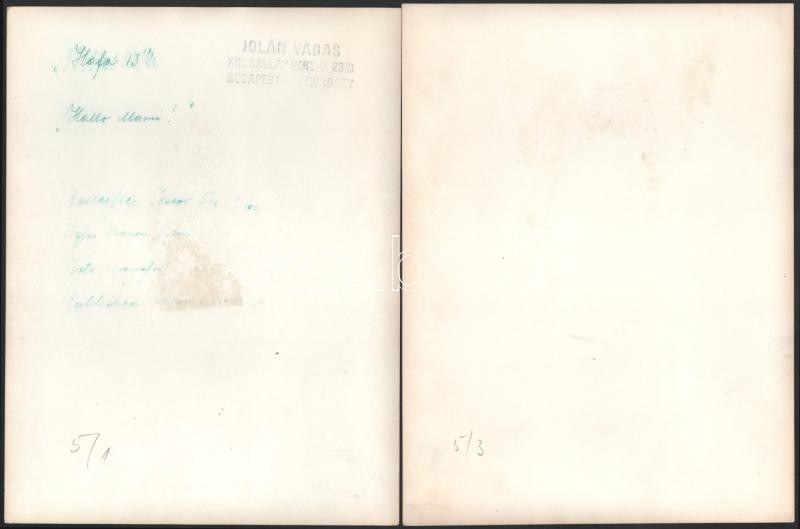 cca 1940 Vadas Jolán (1910-1978) 2 db vintage fotőművészeti alkotása: Vitorlás a Balatonon, Hallo Mami! ...