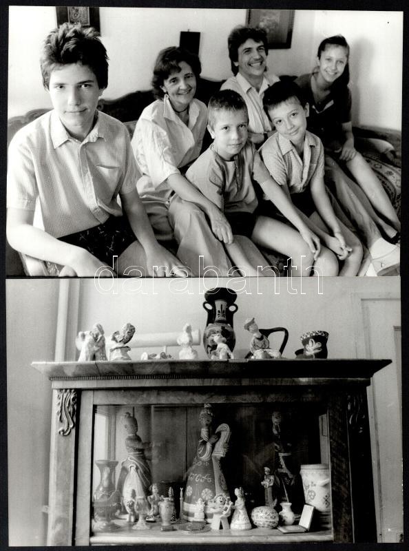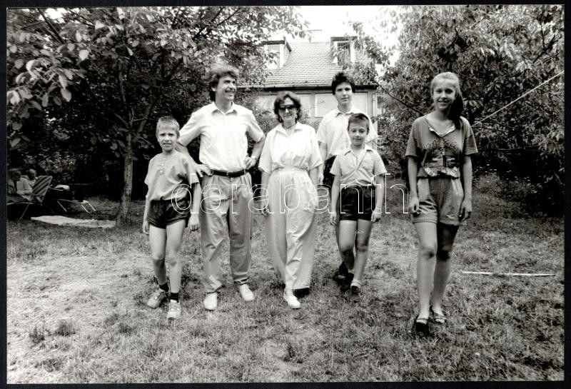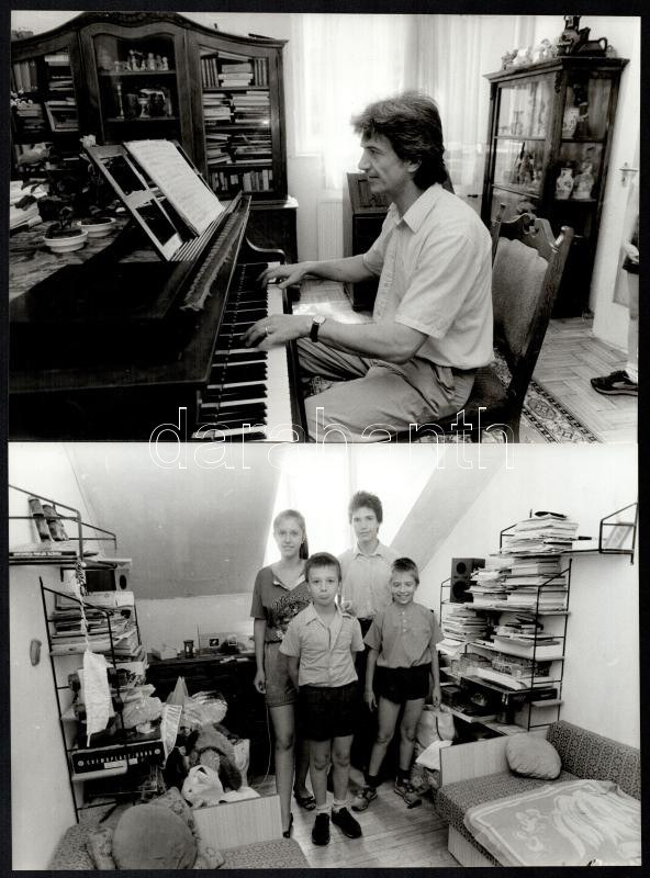 cca 1987 Stalter György budapesti fotóriporter és fotóművész felvételei Medveczky Ádám Kossuth-díjas karmesterről és családjáról, 5 db vintage fotó, pecséttel jelzett, ezüst zselatinos fotópapíron, a Képes7 magazin borítékjában, 16x23,5 cm
