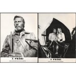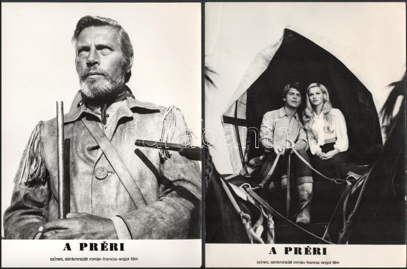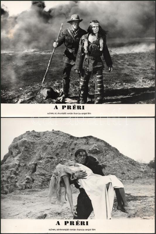cca 1989 előtt készült, "A préri" című angol-francia-román film jelenetei és szereplői, 13 db vintage produkciós filmfotó (vitrinfotó, lobbyfotó) ezüst zselatinos fotópapíron, a használatból eredő (esetleges) kisebb hibákkal, 18x24 cm