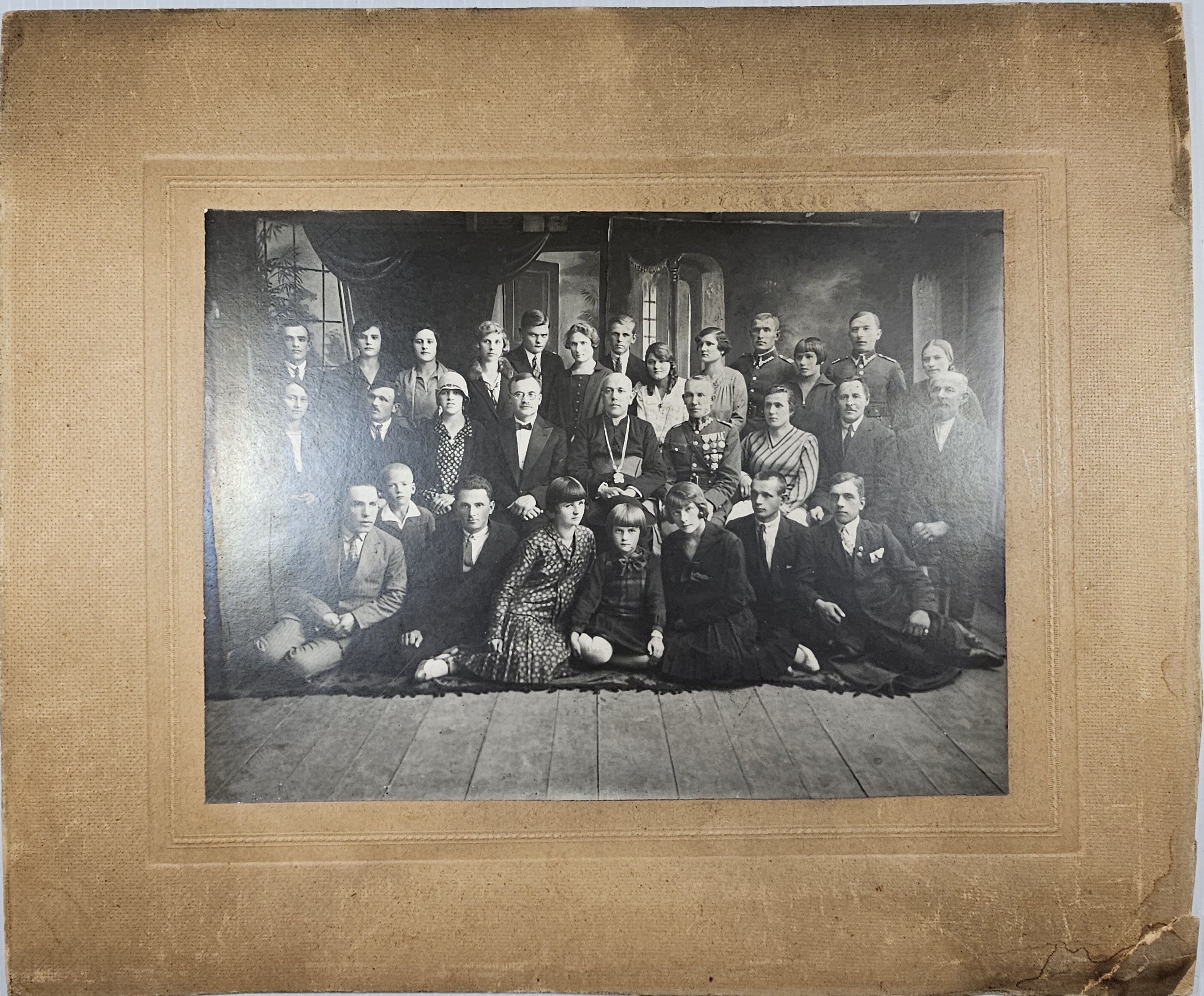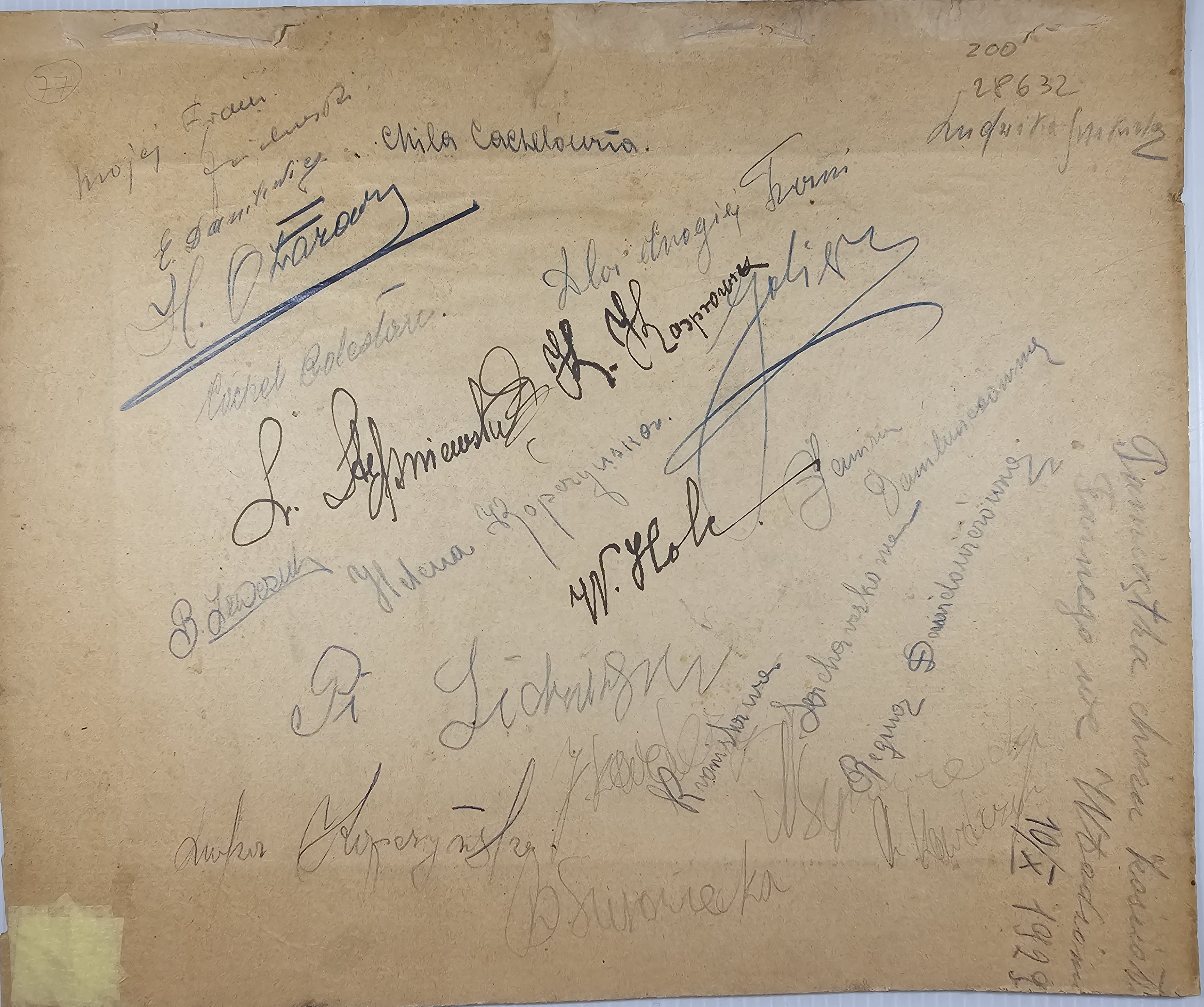 Wym.: 223 x 163 mm, naklejona na karton o wym.: 330 x 275 mm. Na odwrocie podpisy. Nieznaczne uszkodzenia krawędzi kartonu.