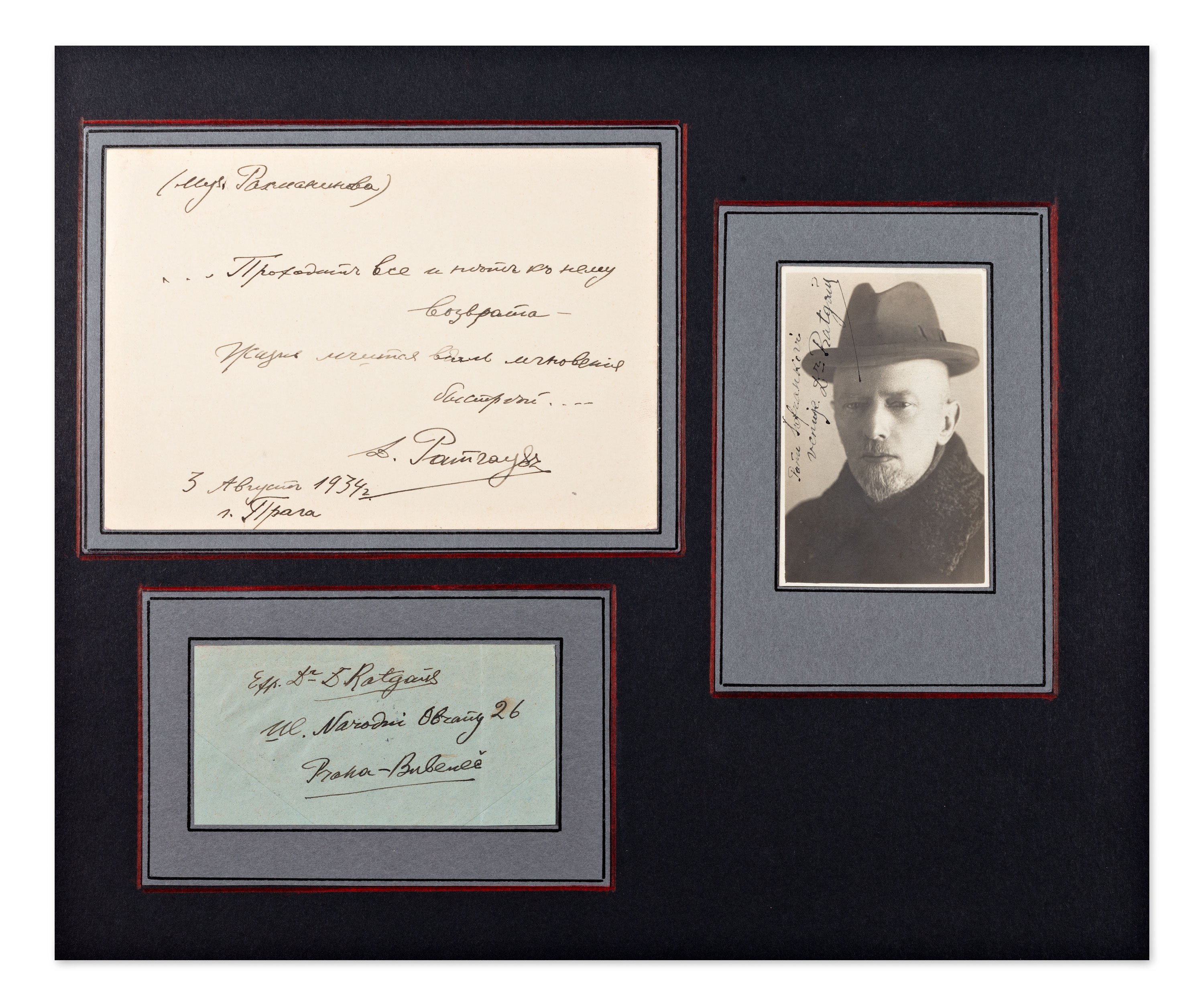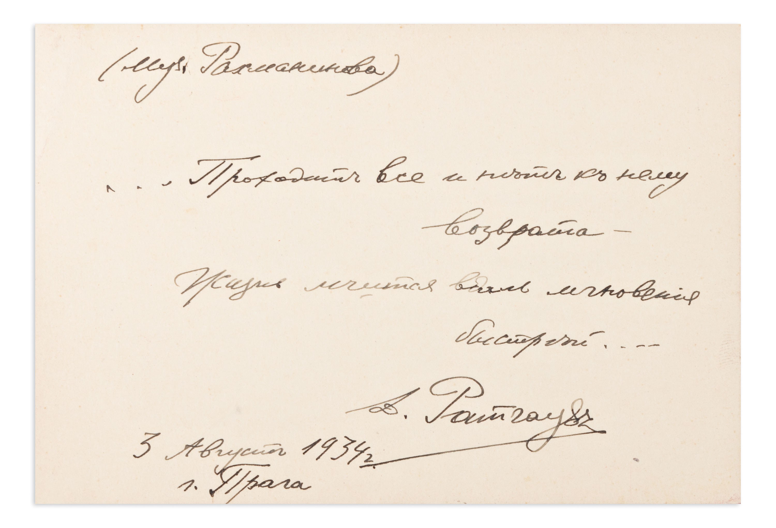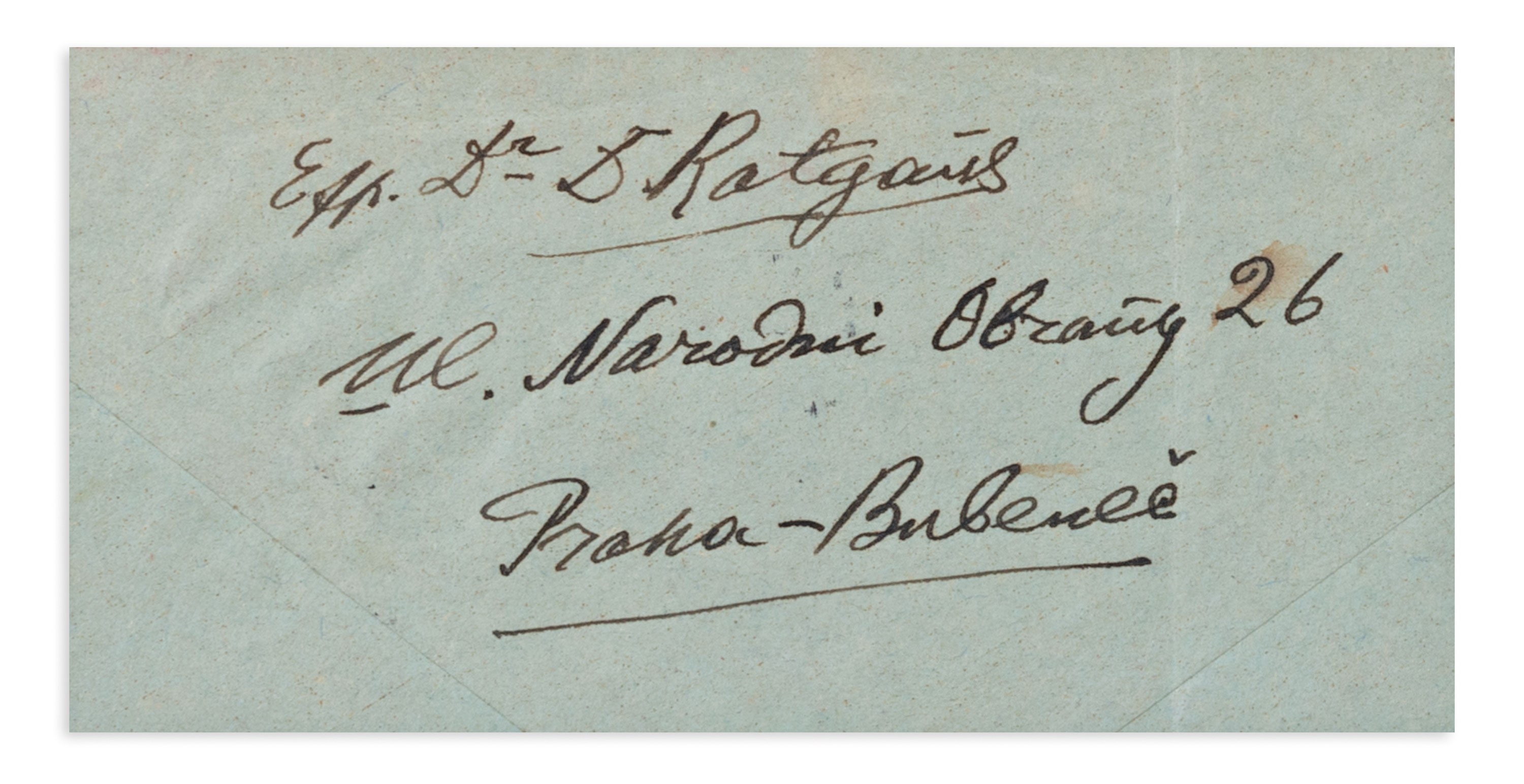Rare handwritten text by Czech conductor, composer, and music critic Josef Stránský, who served as the music director of the New York Philharmonic from 1911 to 1923, succeeding Gustav Mahler. Stránský was renowned not only for his conducting artistry but also as a collector and art dealer.The text, written in German, contains a humorous rhymed recommendation for the Huněk restaurant, loosely translated as: "Láska prochází žaludkem, proto vám radím: navštivte hostinec u Huněka, budete velmi spokojeni!" (Love passes through the stomach, so I advise you: visit the Huněk restaurant, you will be very pleased!)
