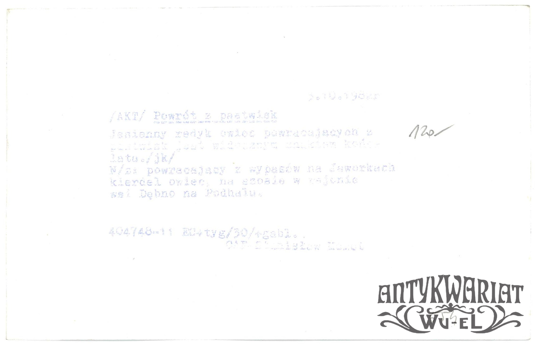 DĘBNO (Podhale). Jesienny redyk, kierdel owiec powracający z wypasu na Jaworkach; fot. CAF - Stanisław Momot, 3.10.1982 r.; stan bardzo dobry, wymiary: 18,7 x 11,8 cm.