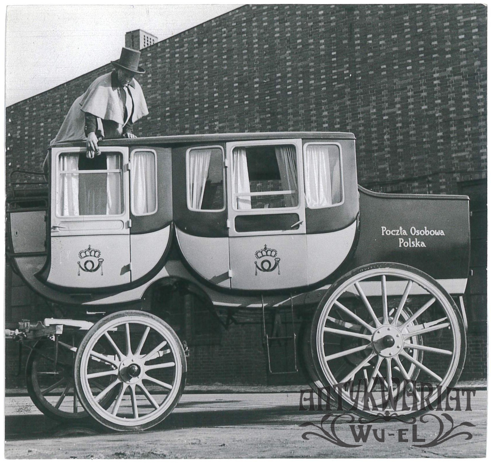 DYLIŻANS. W 400-lecie Poczty Polskiej dyliżans wyruszy w drogę starym szlakiem Wrocław-Katowice-Kielce-Łódź-Warszawa; fot. CAF - Komierowski, 10.10.1958 r.; stan bardzo dobry, wymiary: 14,1 x 13,3 cm.