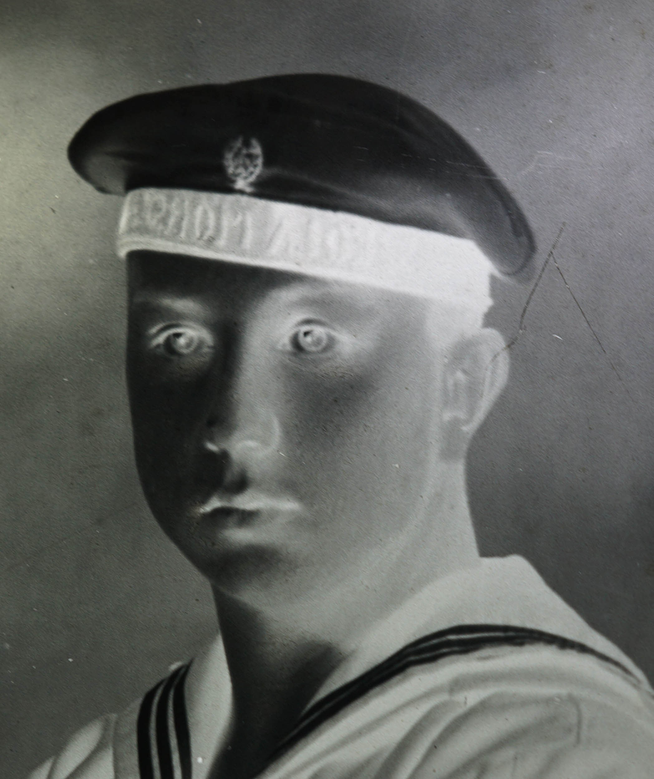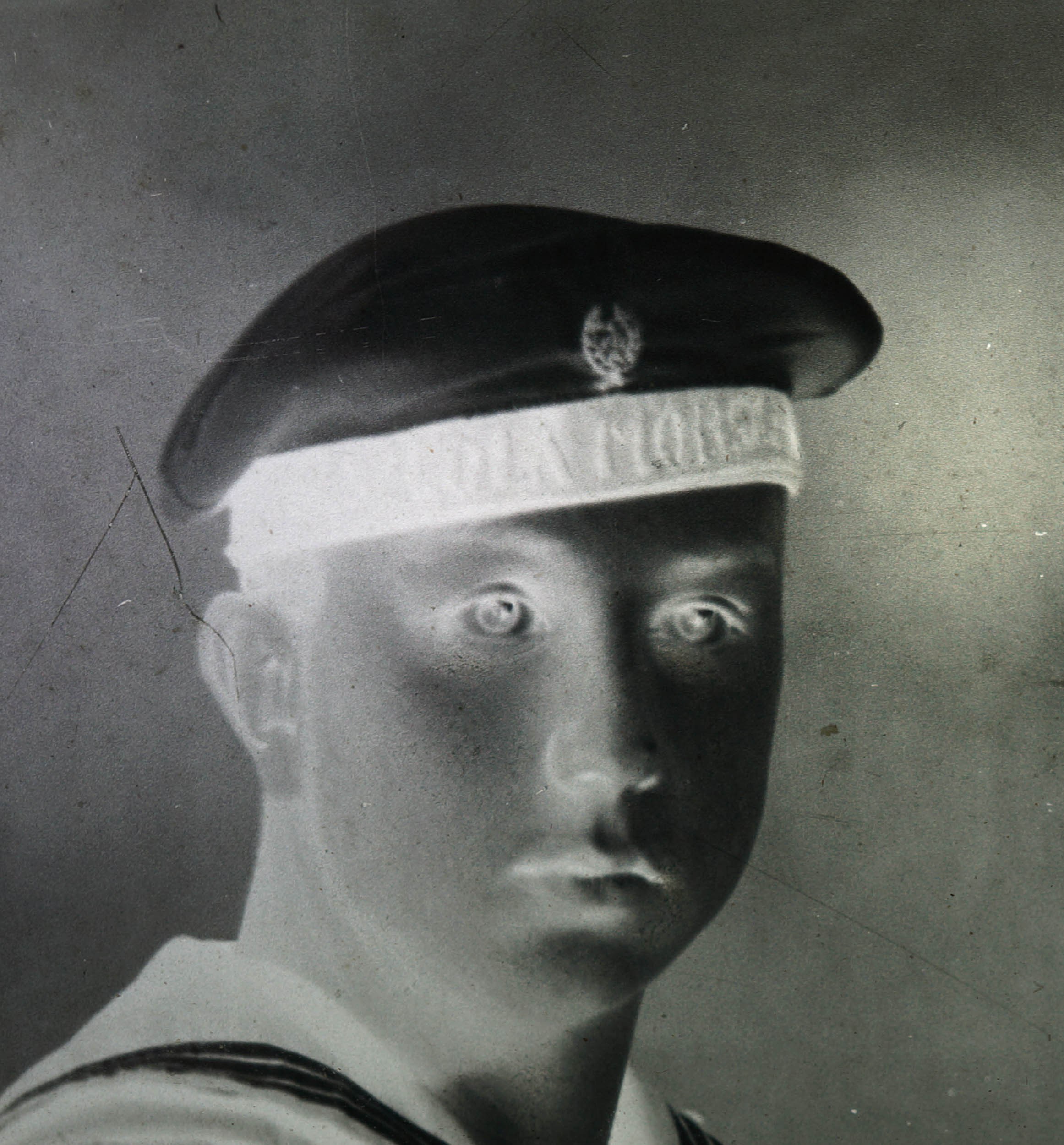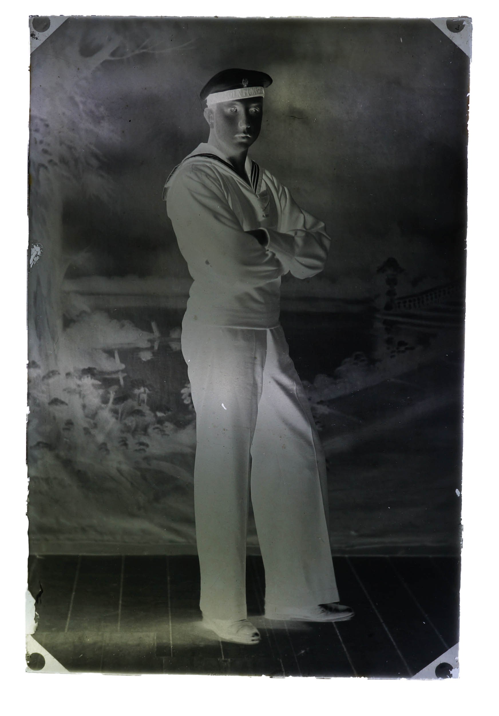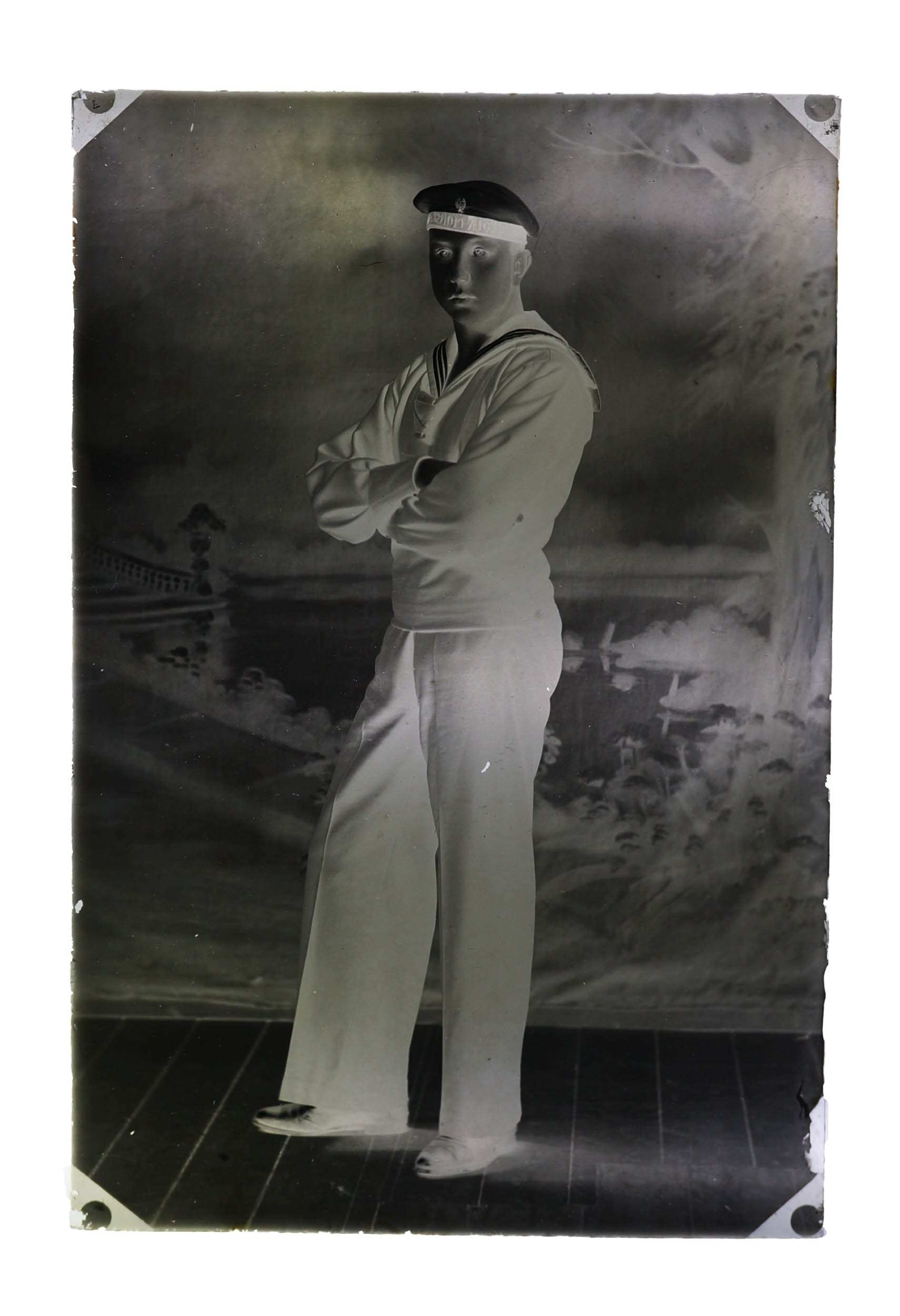 Fotografia polskiego marynarza, ucznia Szkoły Morskiej, SZKLANY NEGATYW, [przed 1939r.], cała postać, f. 9,5 x 14,5cm