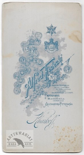 A. Fedecki (ur. 1857 w Żytomierzu, zm. 21 lipca 1902 w Mińsku) - jeden z najznakomitszych fotografików Ukrainy pochodzenia polskiego końca XIX i początku XX w. Alfred Fedecki urodził się w 1857 roku w Żytomierzu w polskiej rodzinie. Wykształcenie fotograficzne zdobył w Akademii Sztuki w Wiedniu. Pracę zawodową rozpoczął w Kijowie pod kierunkiem znakomitego fotografika, Włodzimierza Wysockiego. Następnie w 1886 r. otworzył własne atelier fotograficzne w Charkowie. W swojej samodzielnej pracy artystycznej Fedecki zaczął odchodzić od obowiązującej statycznej „rodzinnej” kompozycji zdjęcia w kierunku „malarskiego” portretowania osób. Nowatorskie, jak na owe czasy, zdjęcia przyniosły artyście dużą popularność oraz liczne nagrody na krajowych i zagranicznych wystawach. Jego wysokie umiejętności doceniły czołowe osobistości życia politycznego i artystycznego. Znane są fotograficzne portrety carów – Aleksandra III i Mikołaja II, prawosławnego duchownego – ojca Jana Kronsztackiego, kompozytorów – Piotra Czajkowskiego i Konstantego Gorskiego. Współpracował z wieloma wydawnictwami, a jego prace były zamieszczane w najbardziej poczytnych czasopismach w Moskwie i Petersburgu. A. Fedecki interesował się także wszelkimi nowościami technicznymi, które starał się wykorzystywać w fotografii. Często w swojej pracy eksperymentował, m.in. podjął próby zapisywania dźwięków, zastosowania artystycznego fotografii rentgenowskiej, wykonywał pierwsze kolorowe fotografie, a także jako pierwszy w ówczesnym imperium rosyjskim zorganizował publiczny pokaz kinematograficzny w Charkowie w dniu 2 grudnia 1896 r. Zmarł w Mińsku. Pochowany został w Charkowie. (Wikipedia).