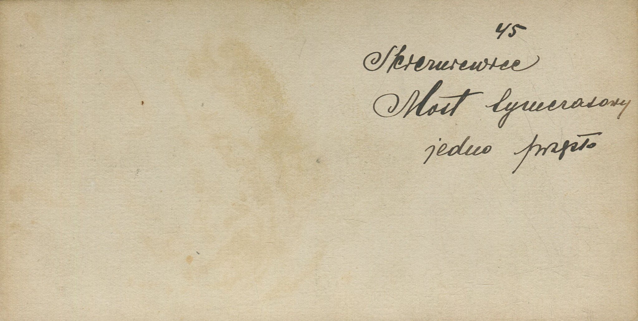 Okres I wojny światowej. Tekturowa fotografia stereoskopowa przedstawiająca zniszczone przęsło mostu w Skierniewicach.