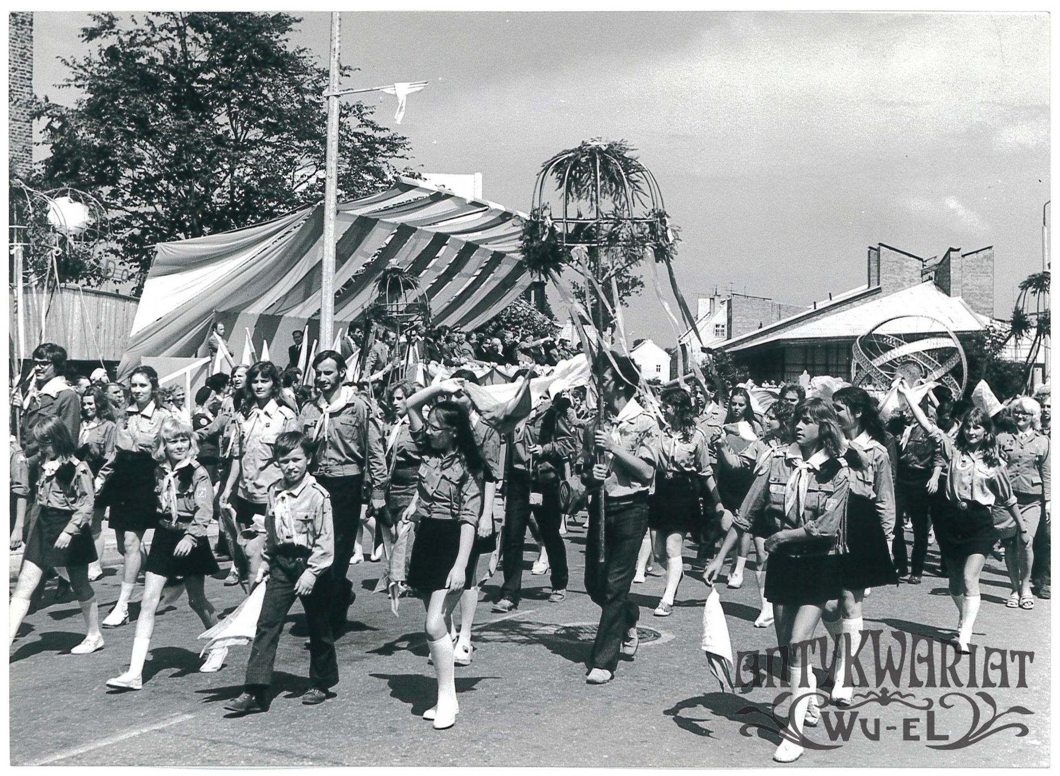FROMBORK. Zakończenie operacji "Frombork 1001", harcerze przed trybuną honorową; fot. CAF - Moroz, 15.07.1973 r.; stan bardzo dobry, wymiary: 18 x 13,1 cm.