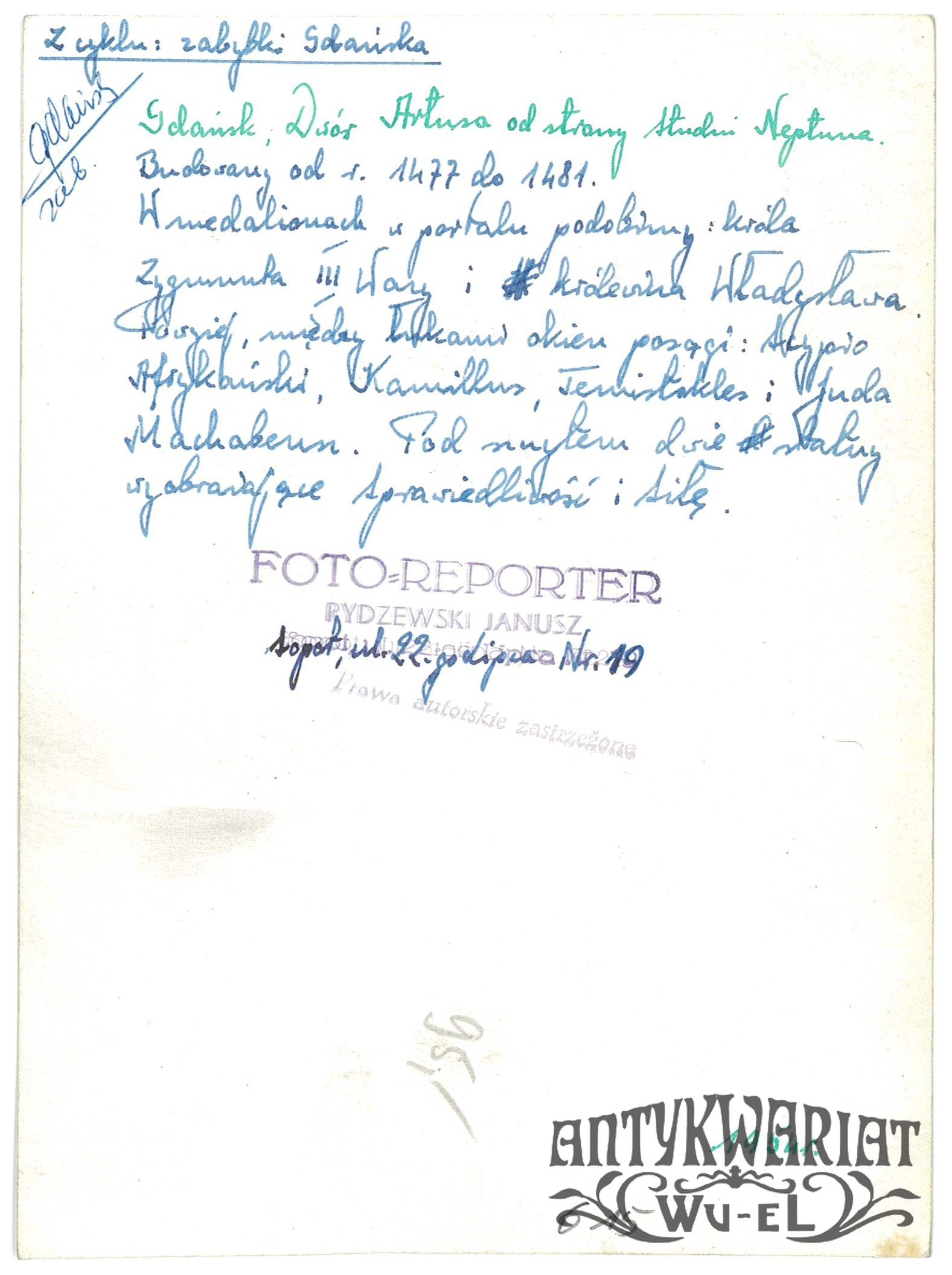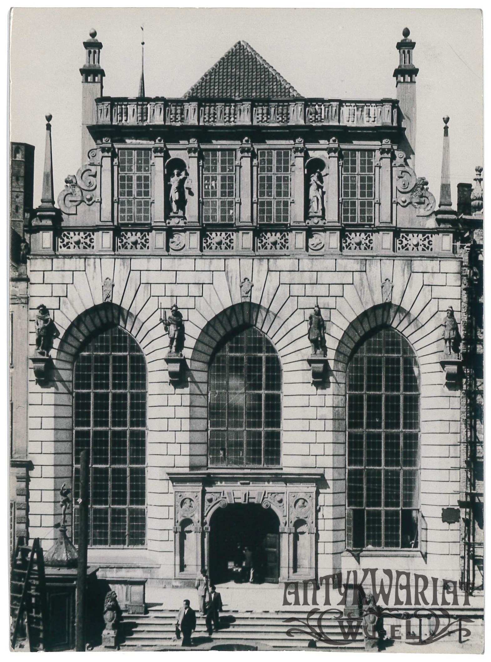 GDAŃSK. Dwór Artusa od strony Neptuna; fot. Janusz Rydzewski, 1954 r.; stan bardzo dobry minus, wymiary: 12,8 x 17,4 cm.