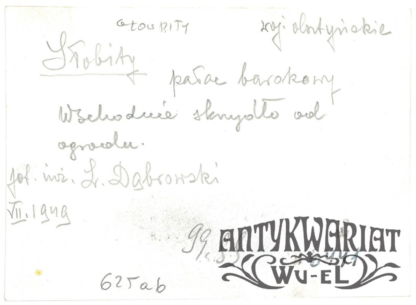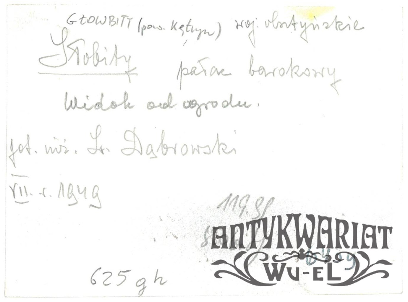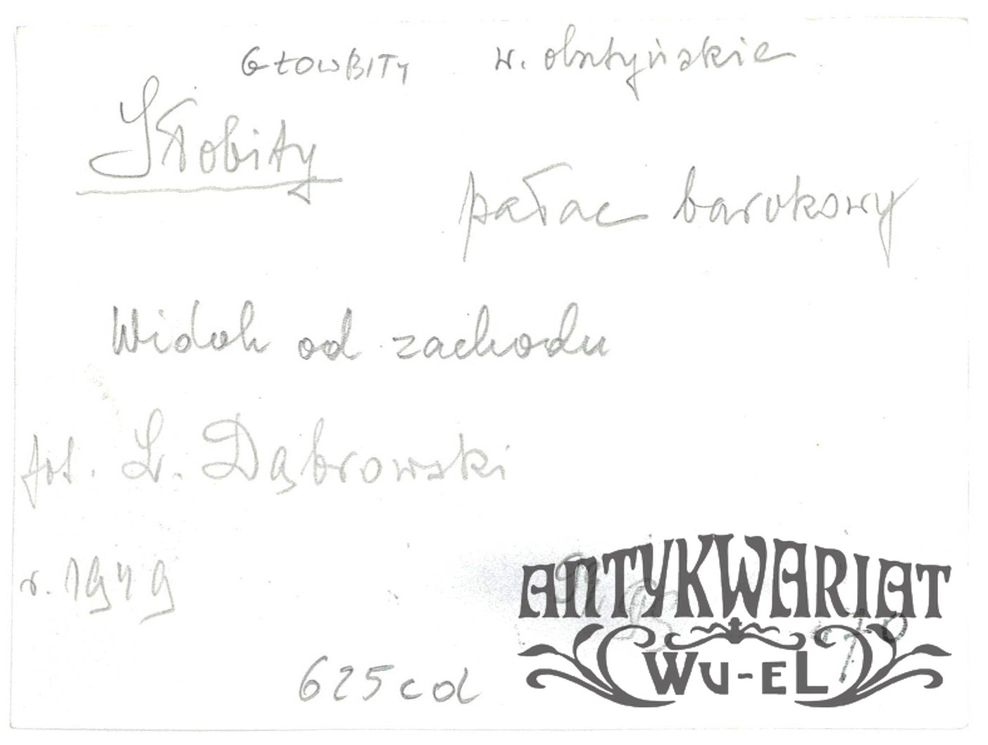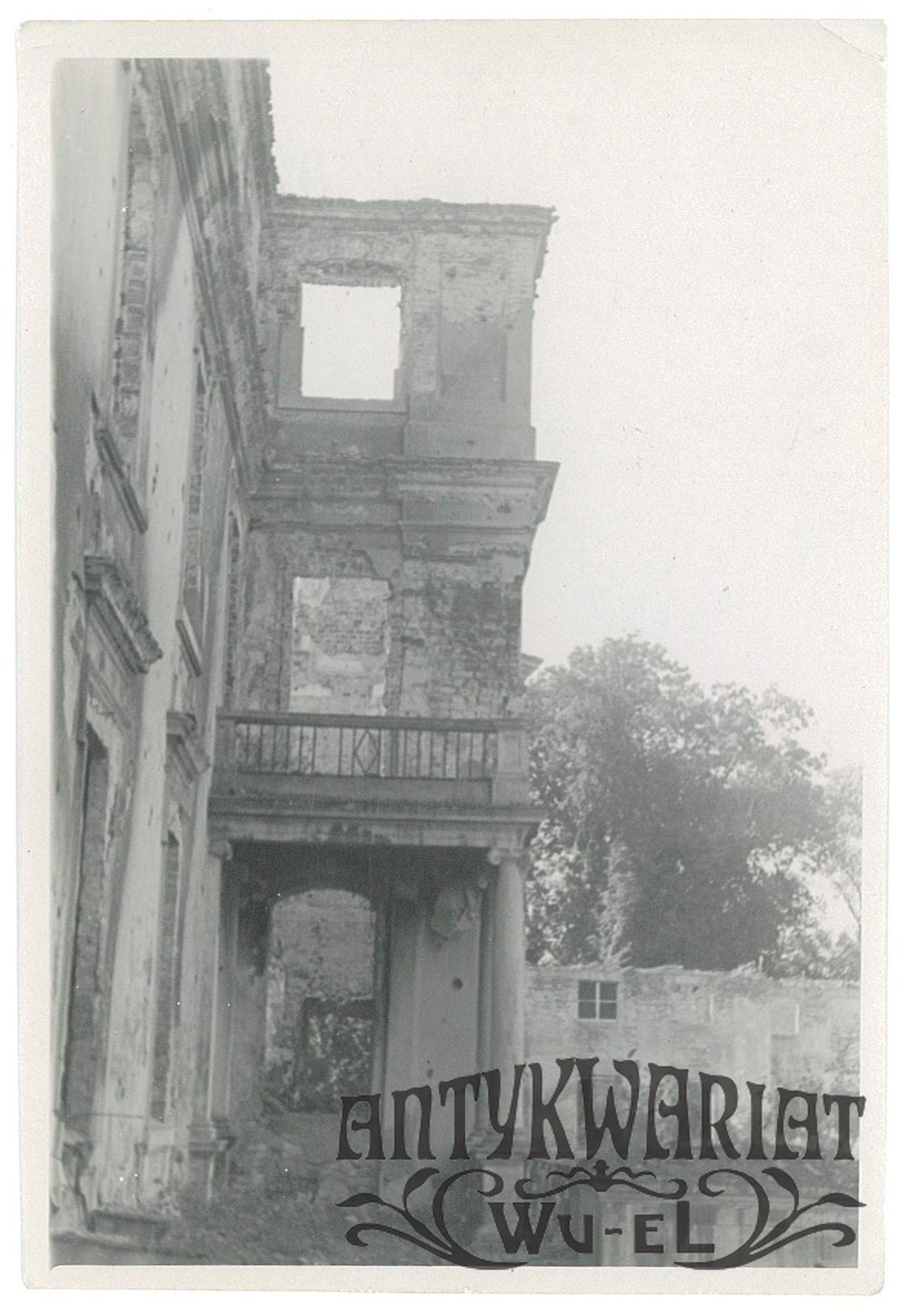 GŁOWBITY. Zestaw 5 zdjęć barokowego pałacu rodu Boehmów, który spłonął w styczniu 1945 r.; fot. L. Dąbrowski, lipiec 1949 r.; stan dobry, wymiary: 11,6/12,3 x 8,4/8,6 cm.