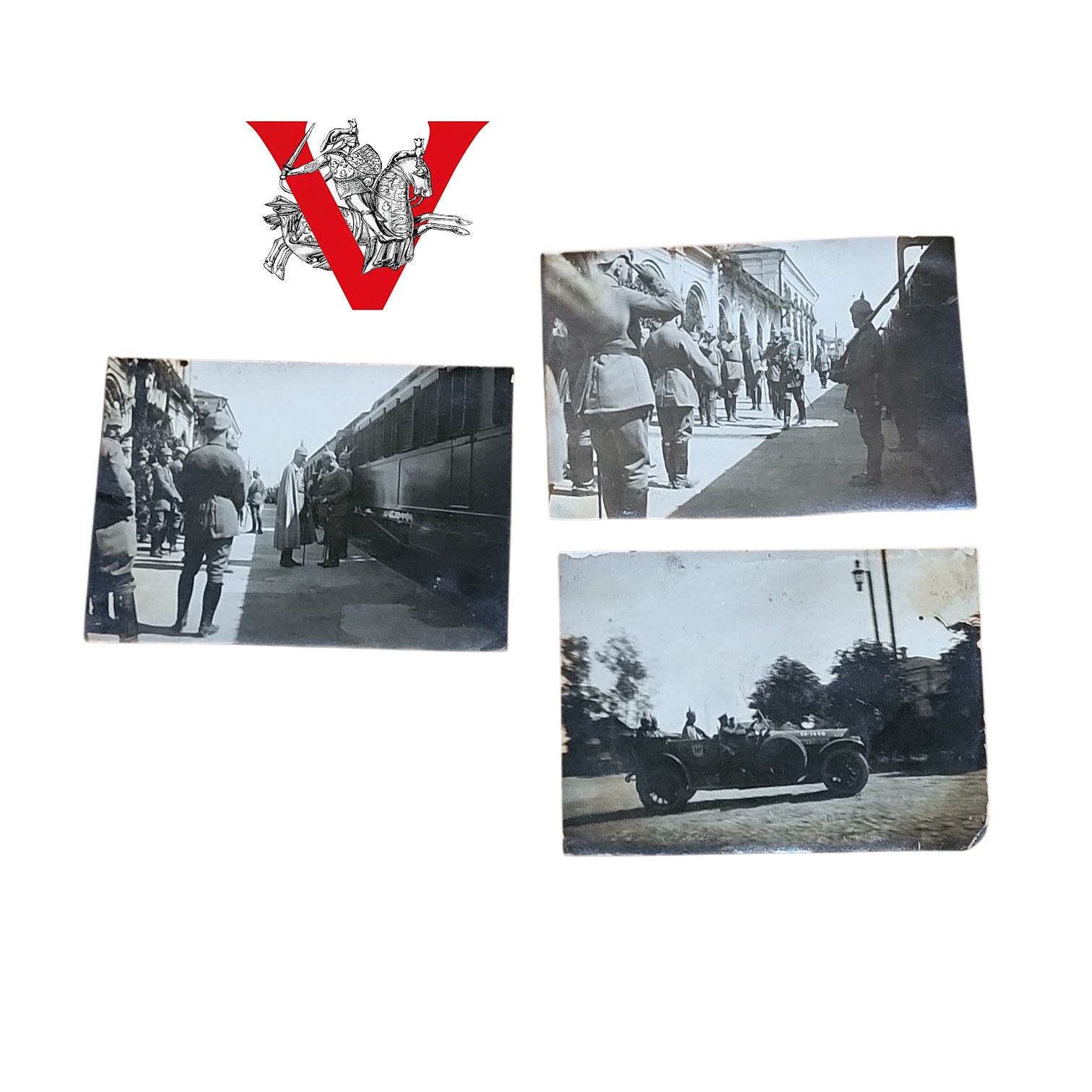 Trzy fotografie z wizyty Cesarza Wilhelma w Grodnie 1916 rok, na każdej z nich jest Cesarz . wymiar ok 6 cm
