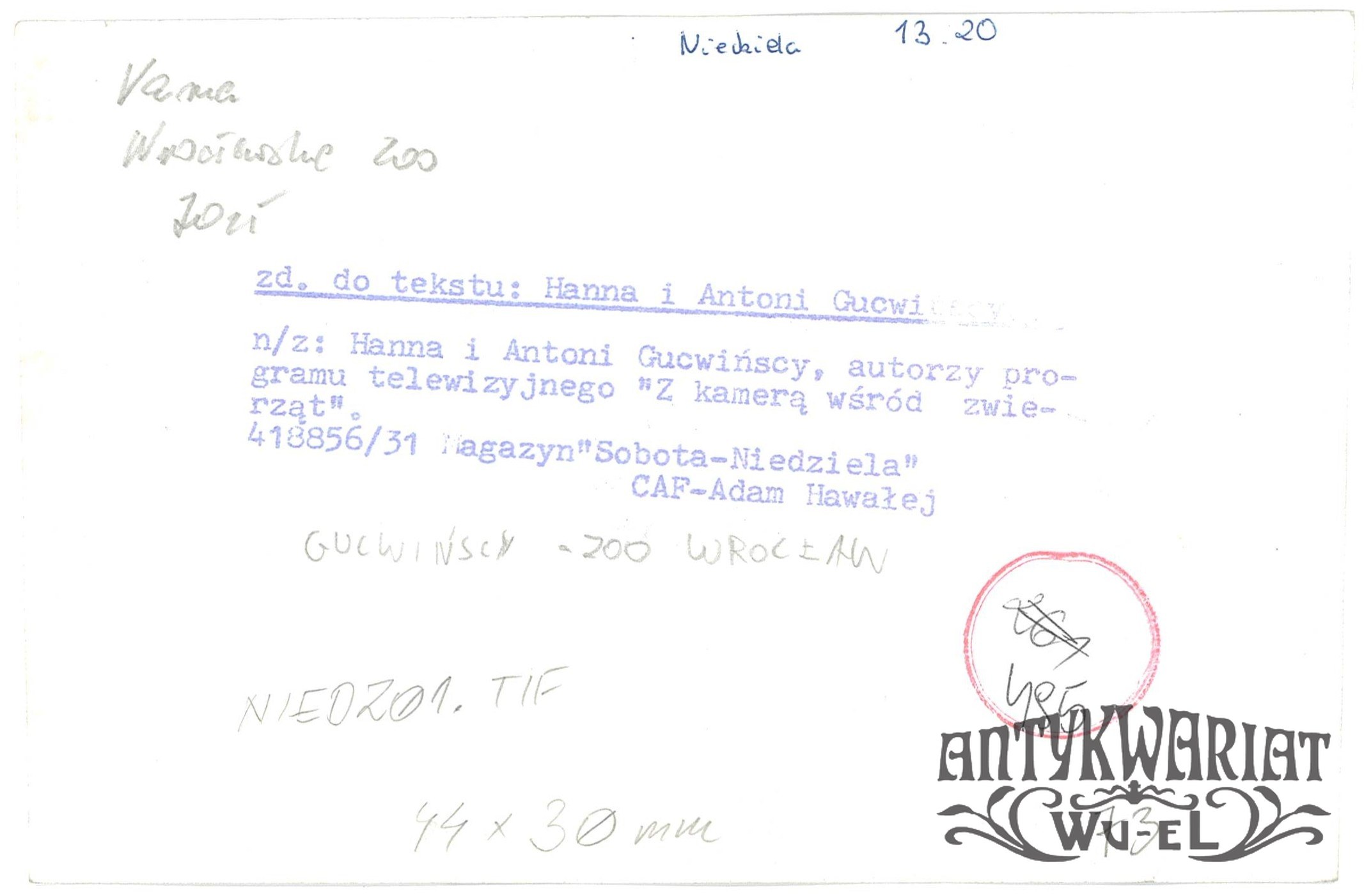 HANNA i ANTONI GUCWIŃSCY z ZOO we Wrocławiu; fot. CAF - Adam Hawałej; stan bardzo dobry, wymiary: 17,6 x 11,5 cm