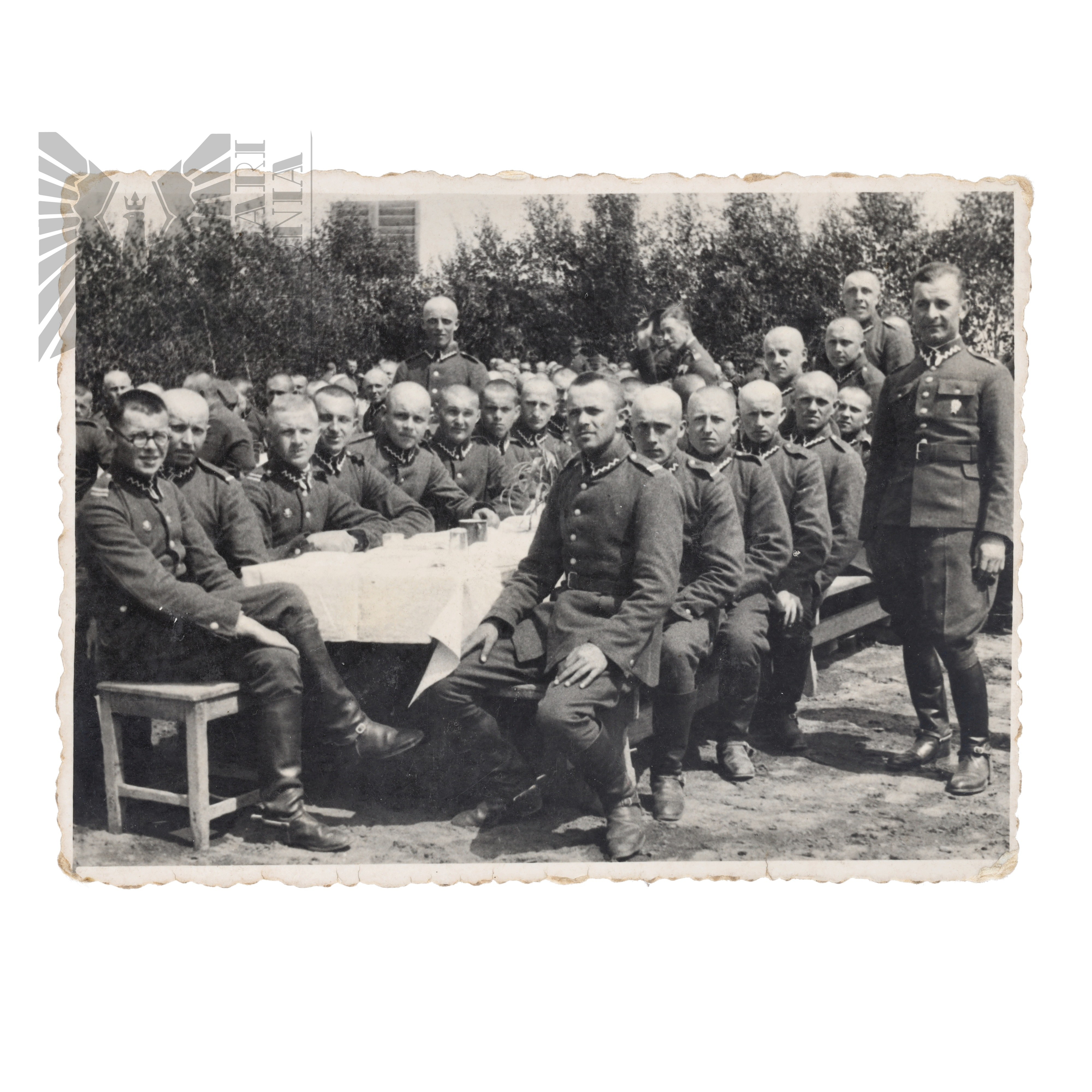 Fotografia Grupowa Żołnierzy Wojska Polskiego Podczas Bankietu, dobrze widoczne umundurowanie wz.19. U żołnierza 1 z prawej widoczna odznaka 26 Pułku Artylerii Lekkiej