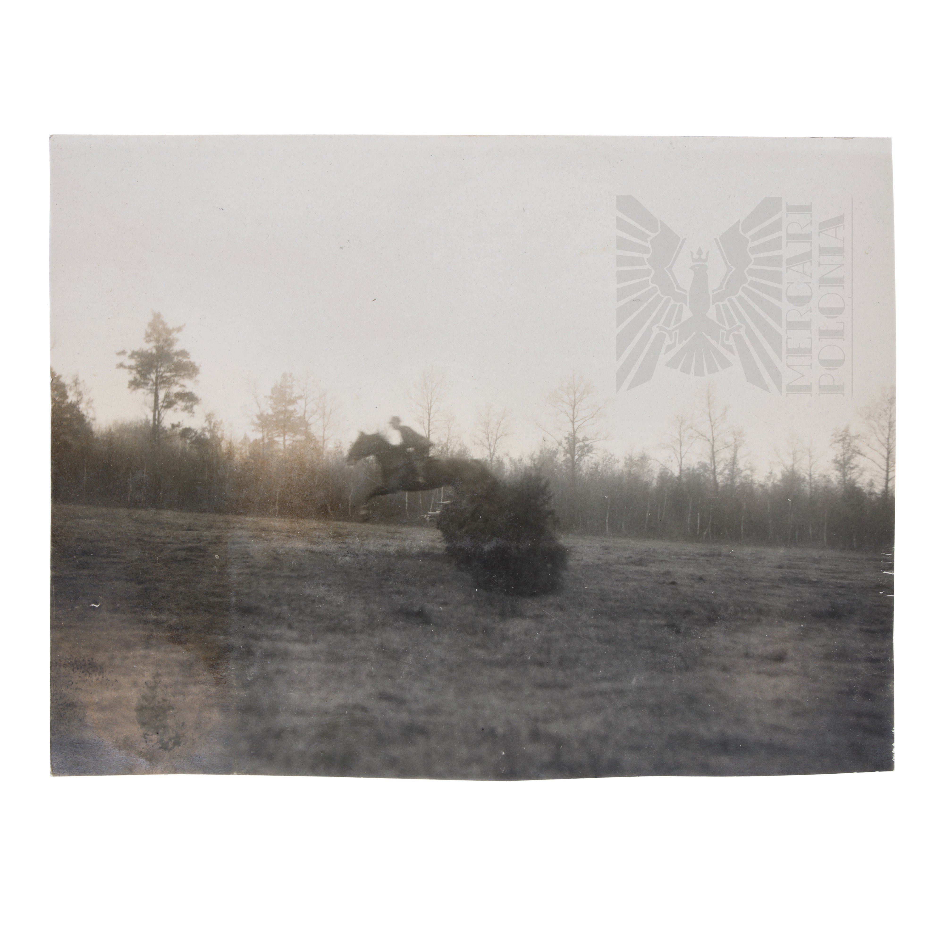 Fotografia żołnierza Wojska Polskiego podczas skoku na koniu.