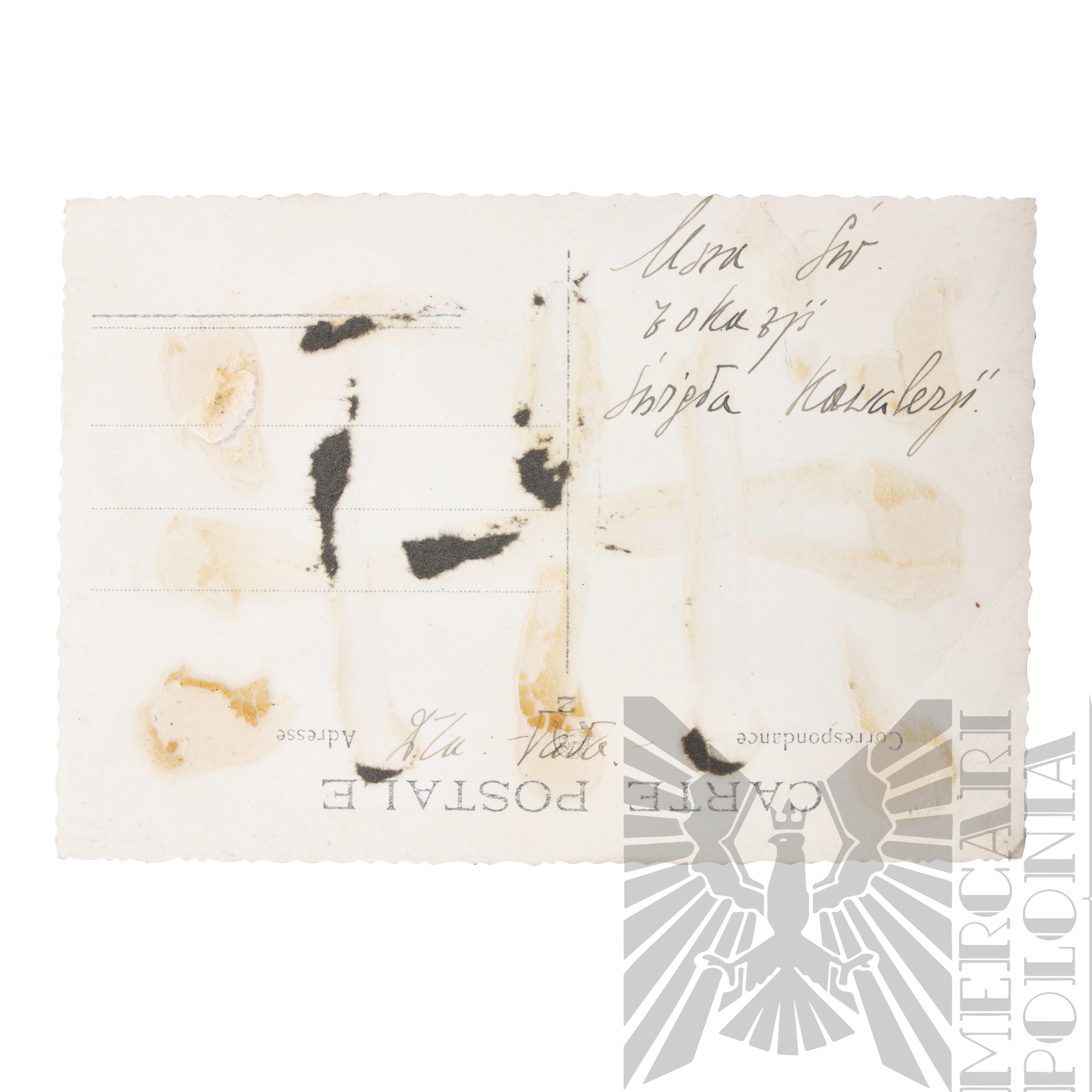 Fotografia przedstawiająca podchorążych Kawalerii prawdopodobnie w Centrum Wyszkolenia Kawalerii w Grudziądzu. Na rewersie podpis “Msza Św. z okazji Święta Kawalerii”. Wymiary: 9 x 13 cm