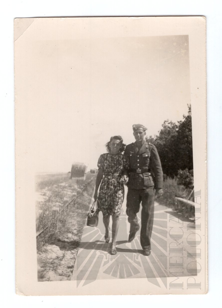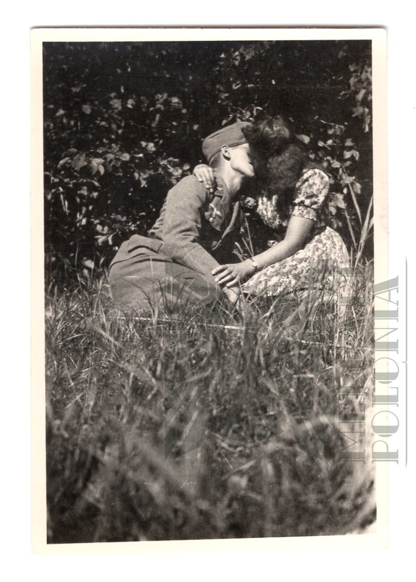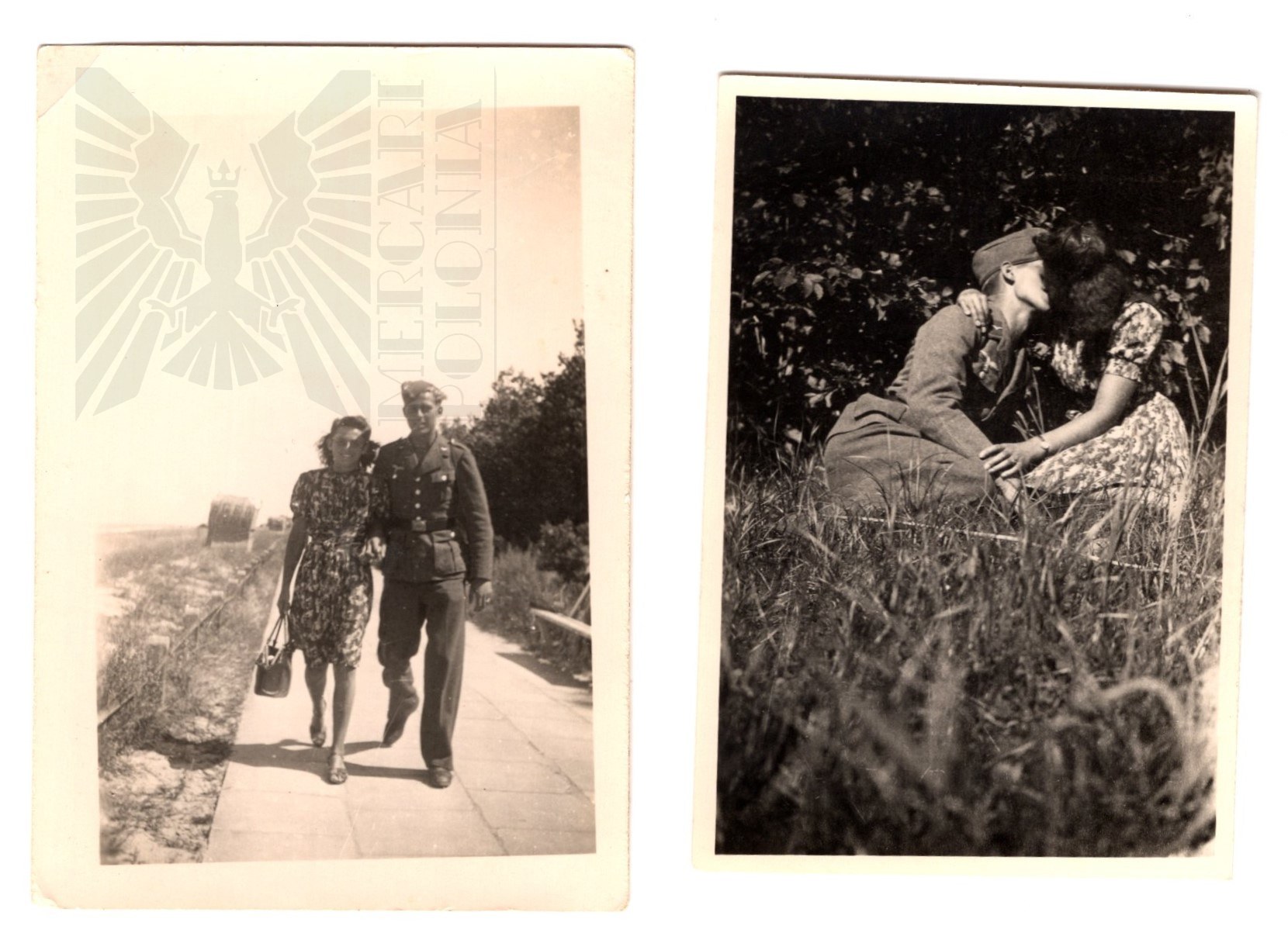 Dwie fotografie ukazujące żołnierza Wehrmachtu podczas spędzania czasu wolnego z dziewczyną.
